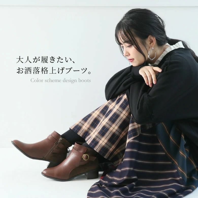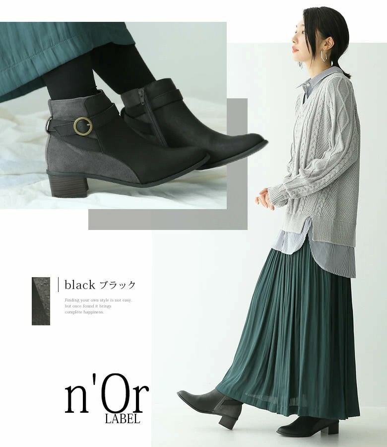 足元からセンスを惹き立てる≪n'OrLABEL≫ベルトデザイン配色ショートブーツです。