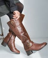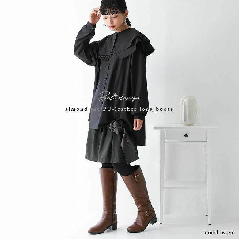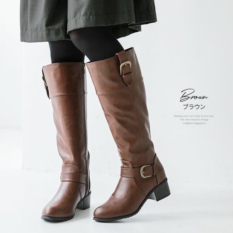 選べるサイズ展開!お洒落で歩きやすいバックルロングブーツ。