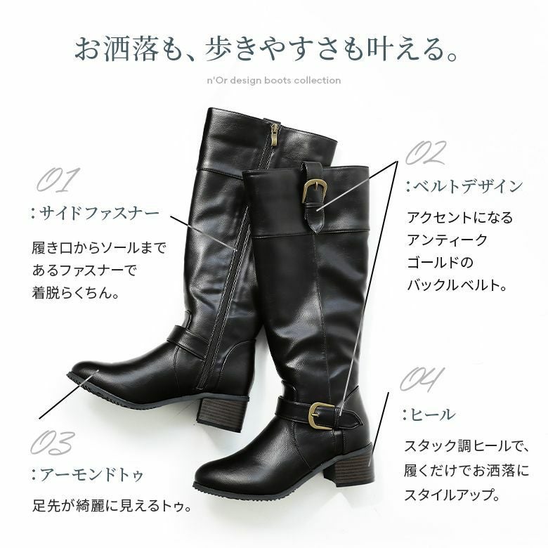 履くだけでお洒落な私になれる≪n'OrLABEL≫ベルトデザインロングブーツです。