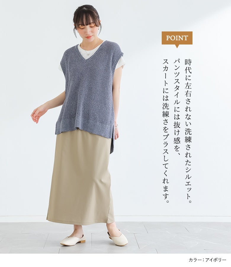 その時のトレンドと、ベーシックを両立させ、落ち着いたデザインで毎日着られる大人カジュアルを提案。