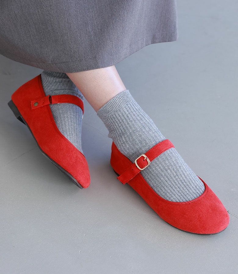 【M】 ◆ 薄手の靴下:ちょうどいい かかと部分に少しあたる感じがありますが、パンプス特有の歩くとカパカパかかとが脱げる感じが一切なく素敵に履けました。気分によってベルトを前後にする事ができて、前にした際もゴム使用なので着脱しやすかったです。歩き心地もよく全体的にぴったりとした感じはなく、程よいゆとりがありました。厚手のソックスを着用する場合は、もうワンサイズUPしてLサイズがおすすめです。