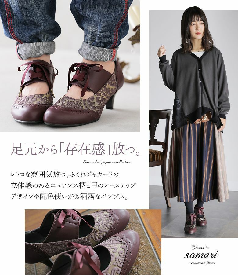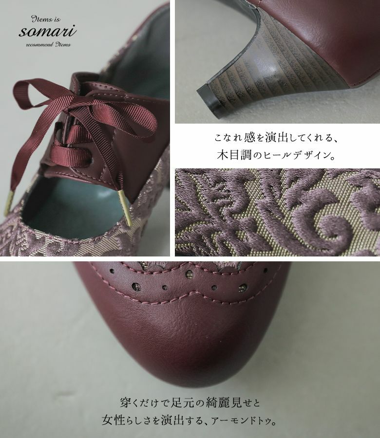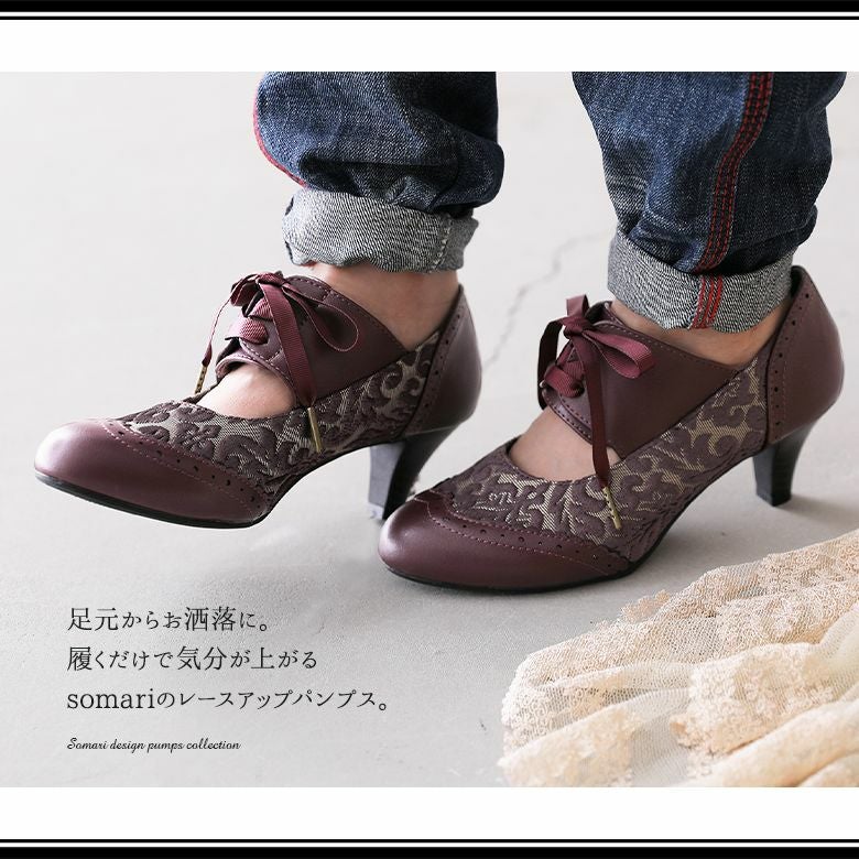 履くだけでコーデの雰囲気を格上げする≪somari imagination≫レースアップクラシカルパンプスです。