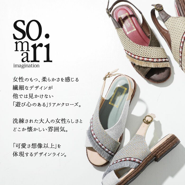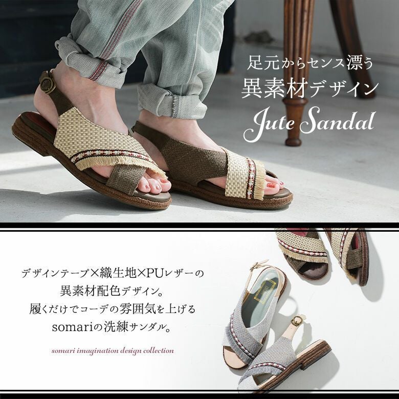 履くだけでコーデの雰囲気を上げる≪somari imagination≫異素材クロスデザインジュートサンダルです。