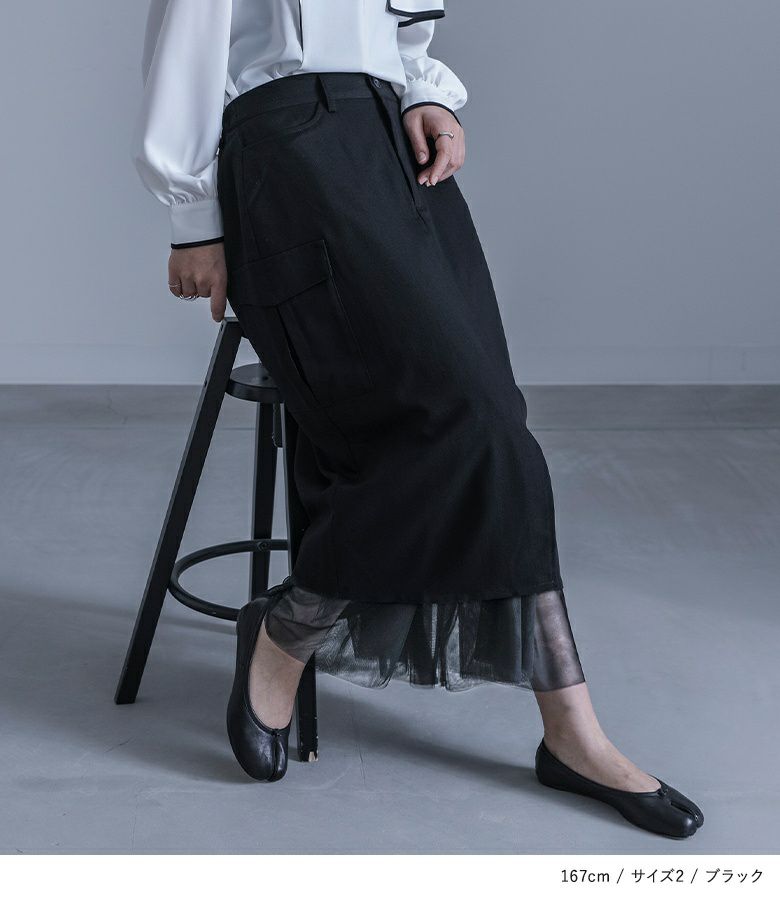 【普段着用】 Tops: L/LL Bottoms: L/LL | 【2】 着丈(ウエスト穿き):くるぶし上3cm位 ウエスト:ジャスト ヒップ:ジャスト 太もも周り:ややゆったり 全体:ジャスト