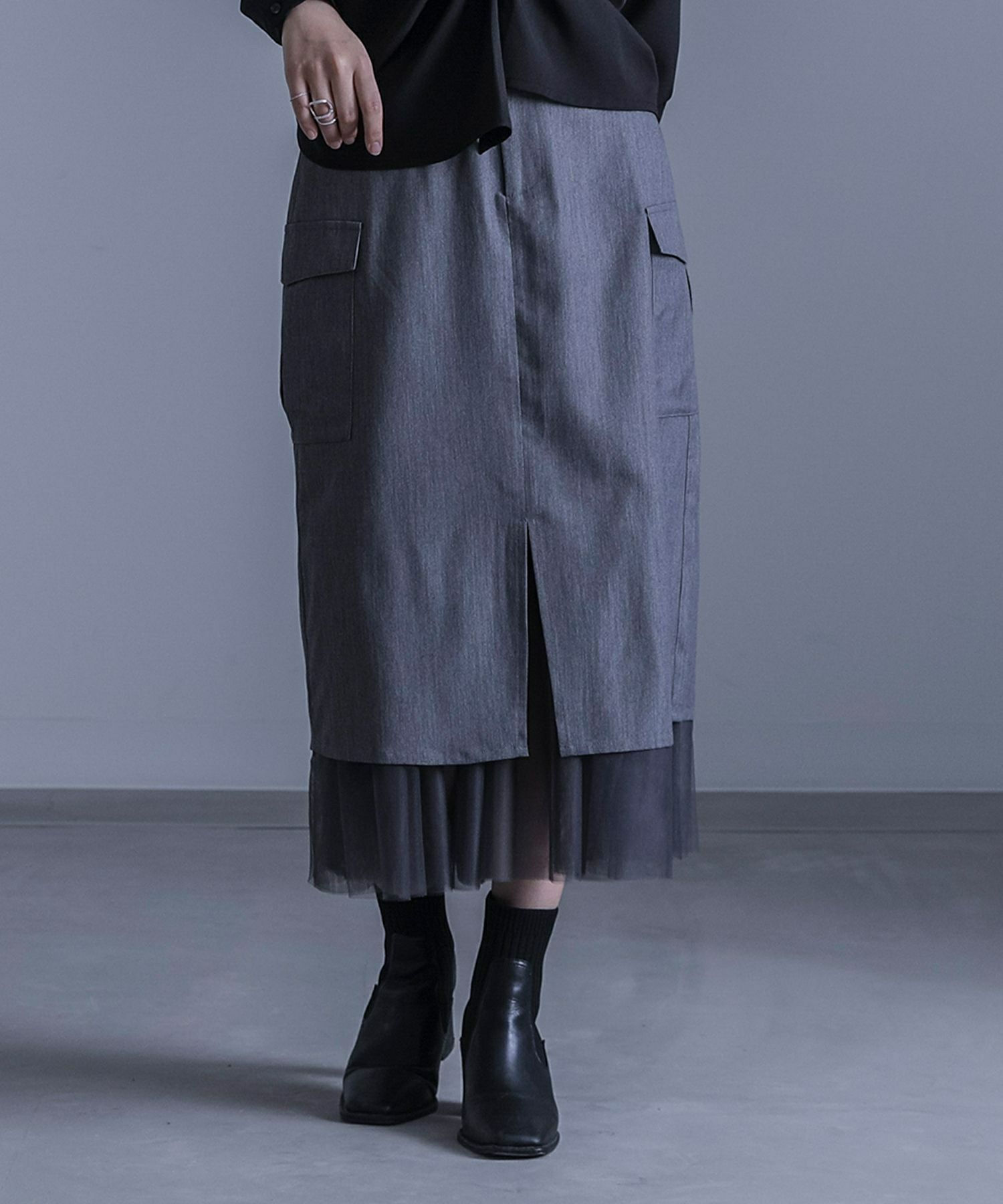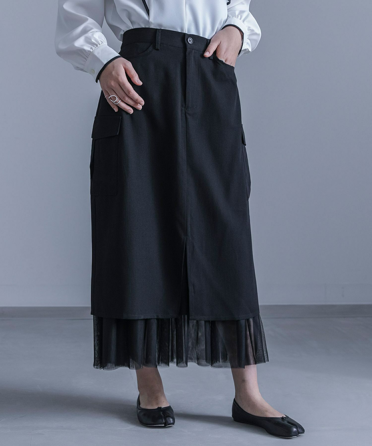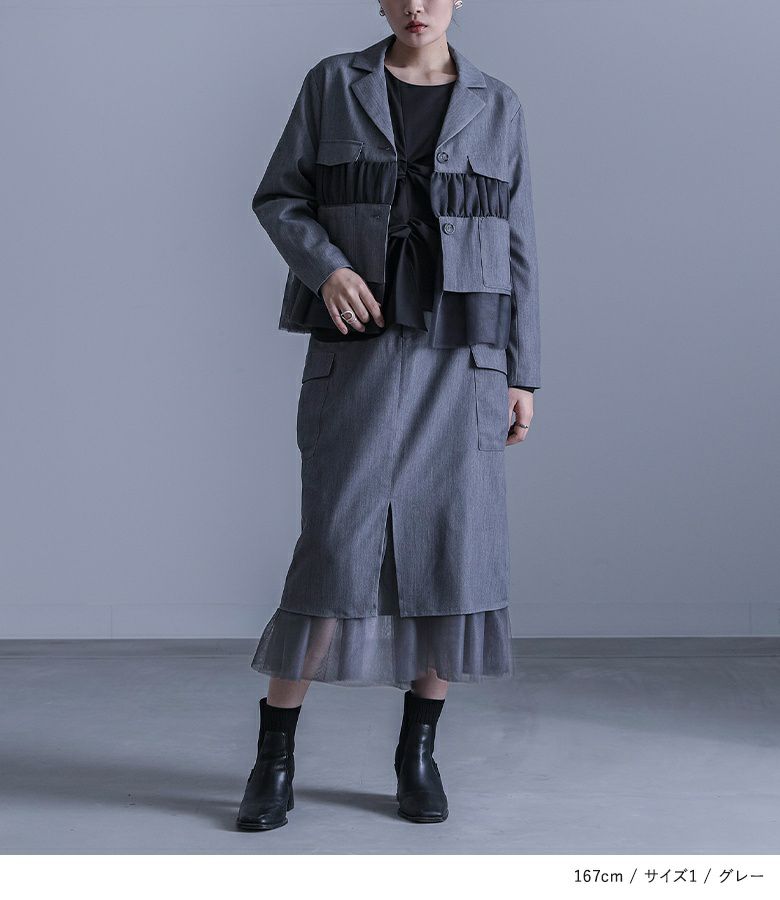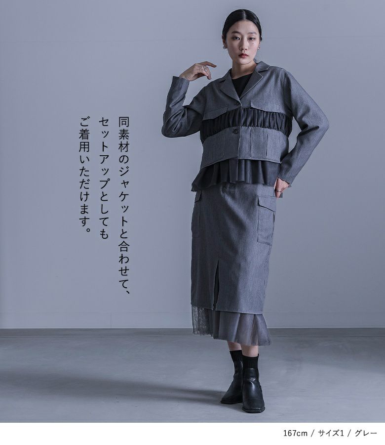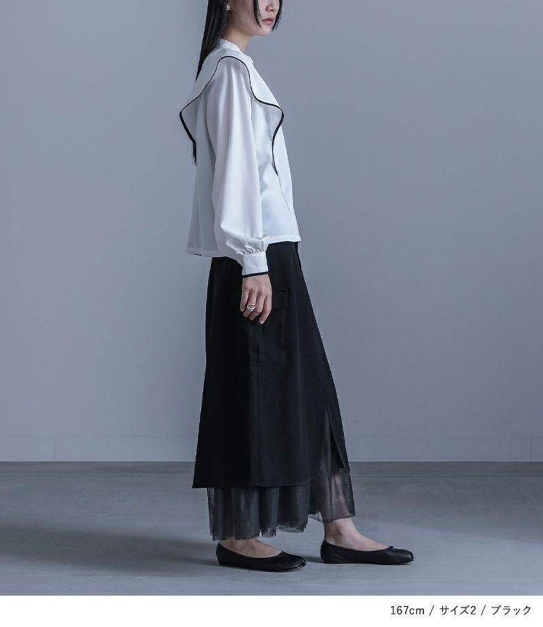 【普段着用】 Tops: M Bottoms: M | 【1】 着丈(ウエスト穿き):ふくらはぎが隠れる位 ウエスト:ジャスト ヒップ:ゆったり 太もも周り:ゆったり 全体:ややゆったり
