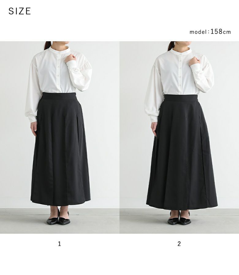 【普段着用】 Tops: M Bottoms: M/L | 【1】 着丈(ウエスト穿き):くるぶし上5cm位 ウエスト:ややゆったり ヒップ:ゆったり 太もも周り:ゆったり 全体:ゆったり