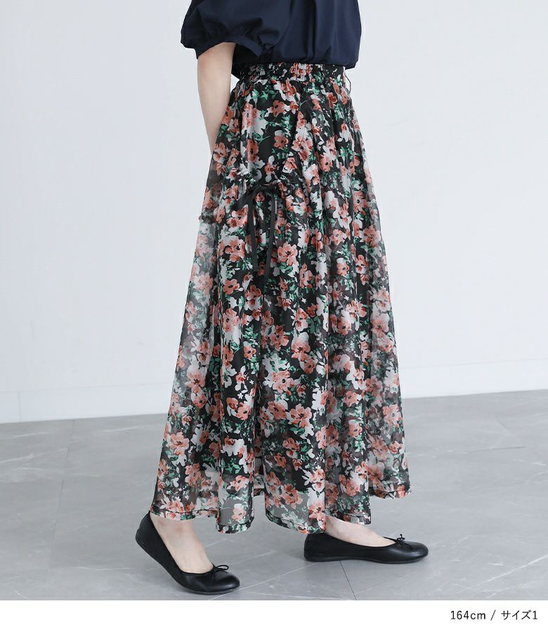 【普段着用】 Tops: M Bottoms: M/L | 【1】 着丈(ウエスト穿き):ふくらはぎが隠れる位 ウエスト:ジャスト ヒップ:ゆったり 太もも周り:ゆったり 全体:ややゆったり