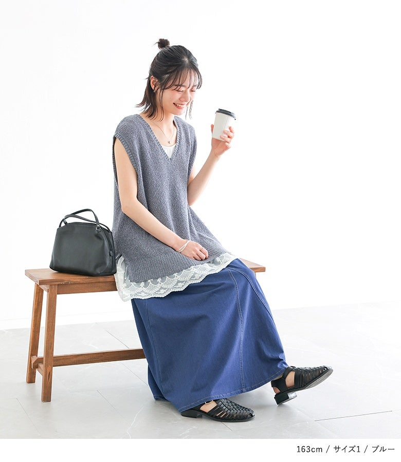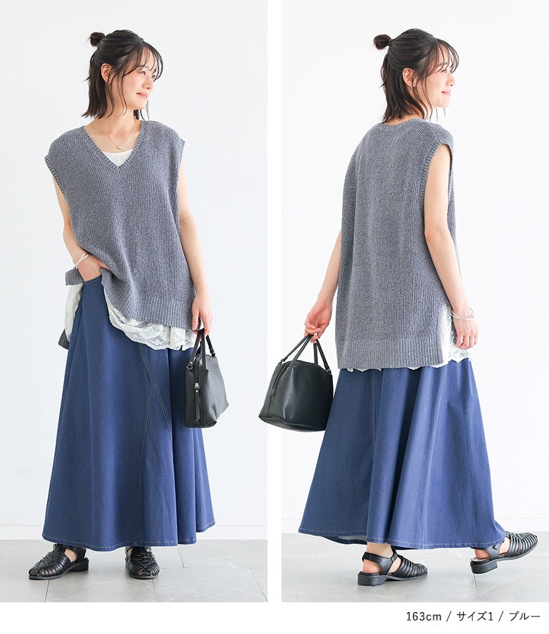 【普段着用】 Tops: S/M Bottoms:S/M | 【1】 着丈(ウエスト穿き):ちょうどくるぶし位 ウエスト:ゆったり ヒップ:大きい 太もも周り:大きい 全体:大きい