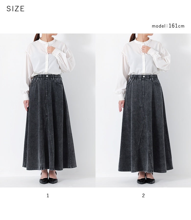 【普段着用】 Tops: M/L Bottoms:M/L | 【1】 着丈(ウエスト穿き):ちょうどくるぶし位 ウエスト:ジャスト ヒップ:ややゆったり 太もも周り:ゆったり 全体:ジャスト