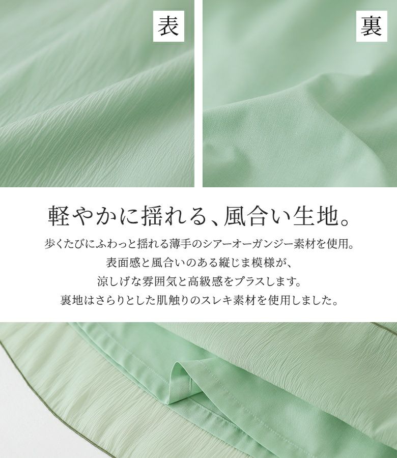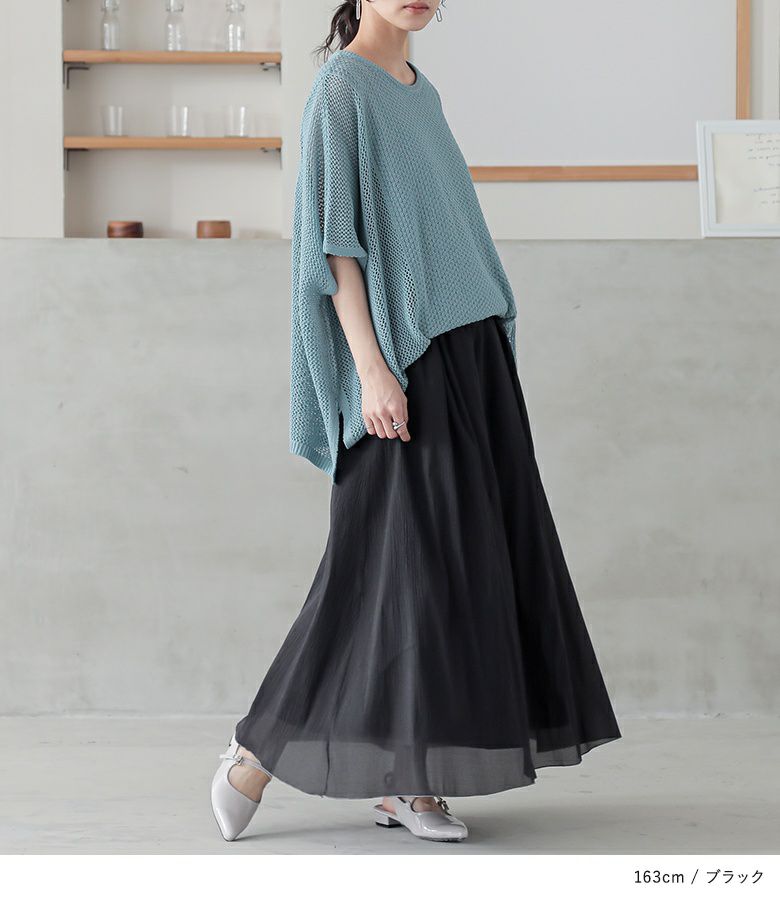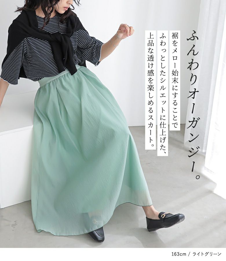 ふわっとしたシルエットに仕上げた、上品な透け感を楽しめるスカート。
