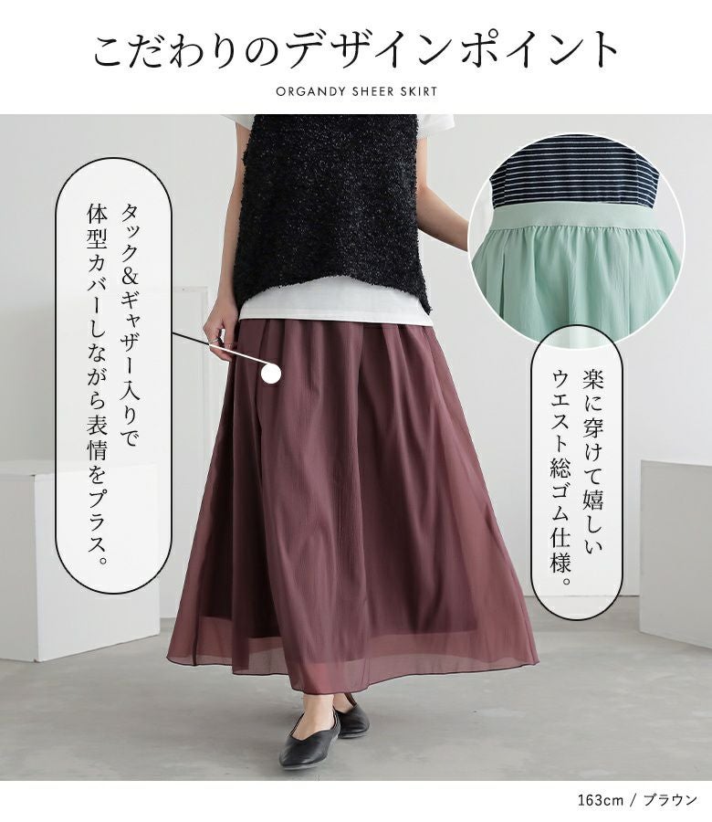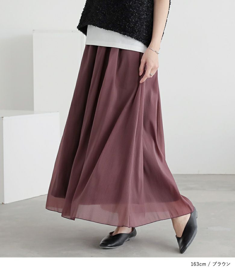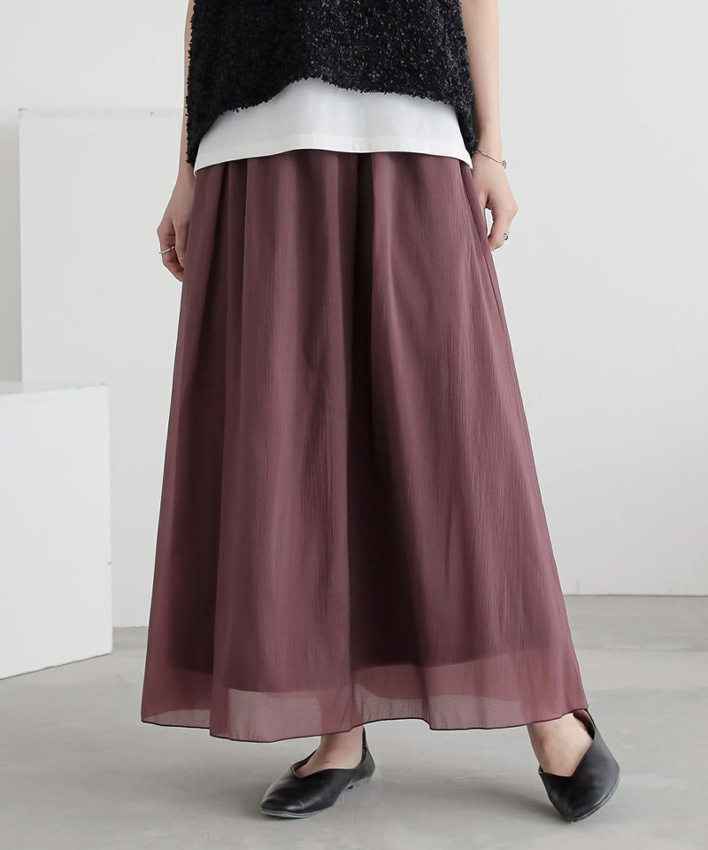 ふわっとしたシルエットに仕上げた、上品な透け感を楽しめるスカート。