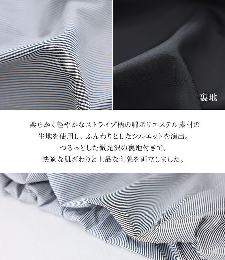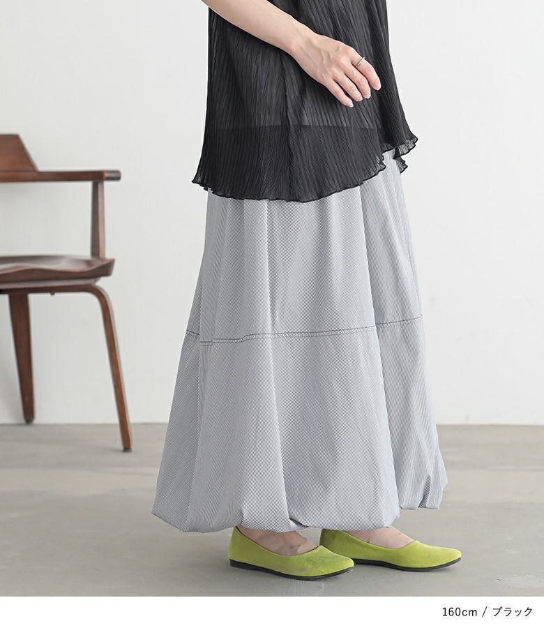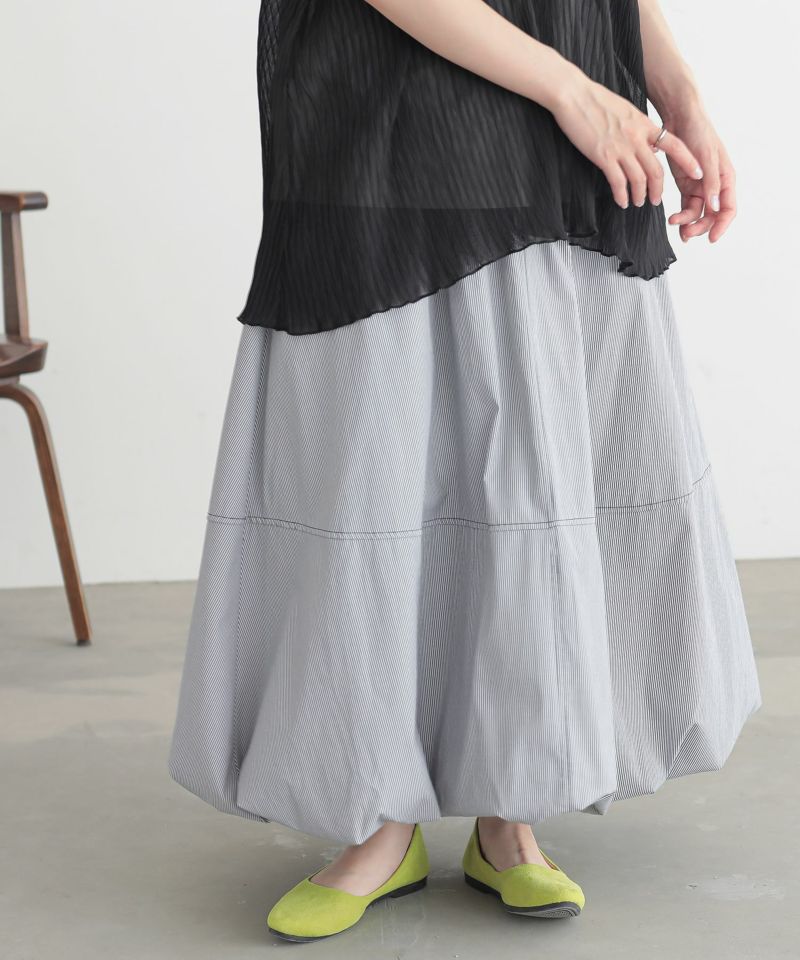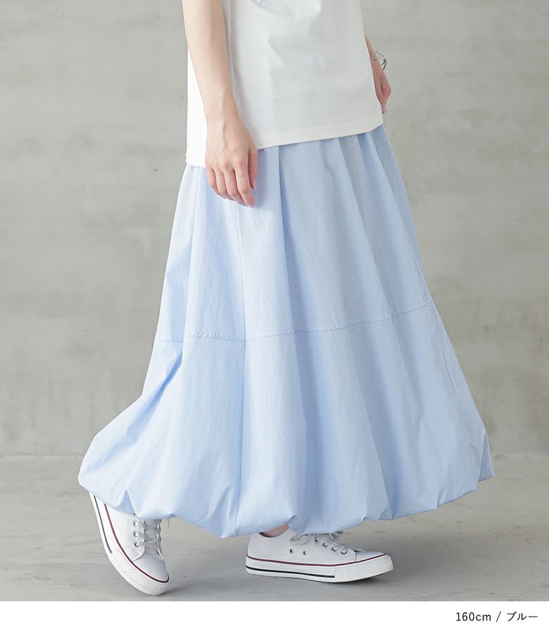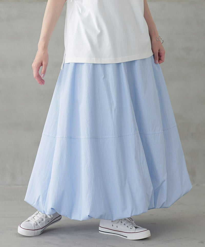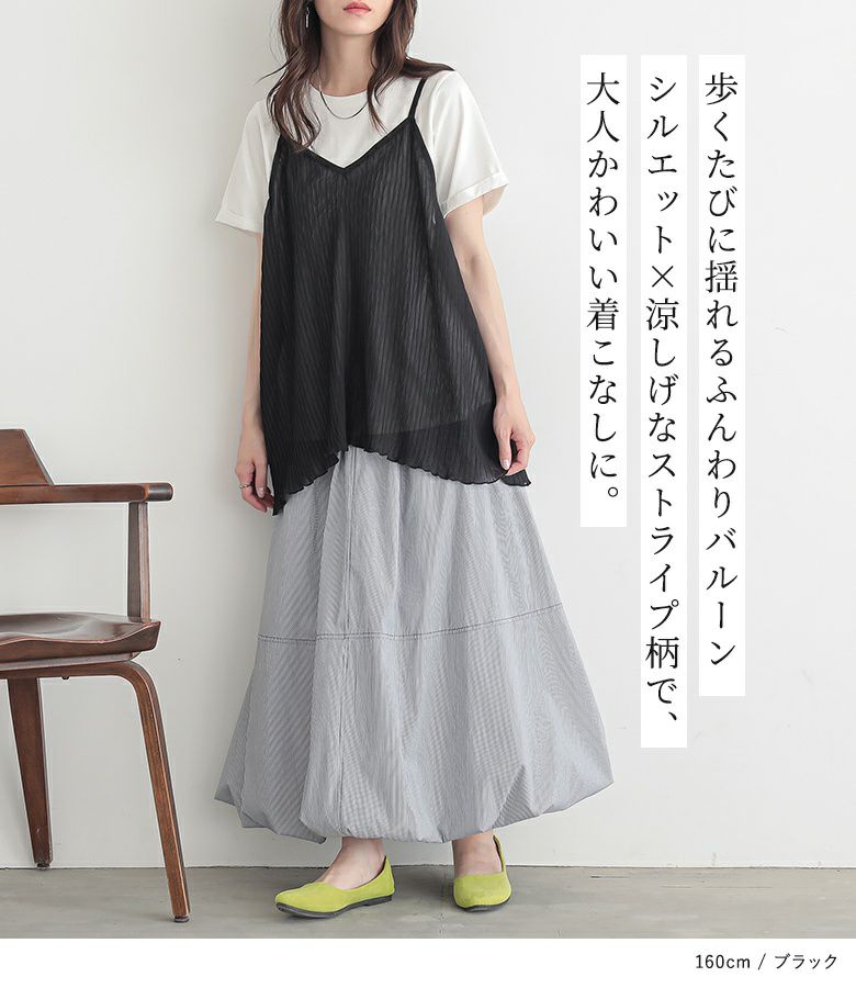 ふんわりバルーン×涼しげストライプ柄で大人可愛く着こなせるスカート。