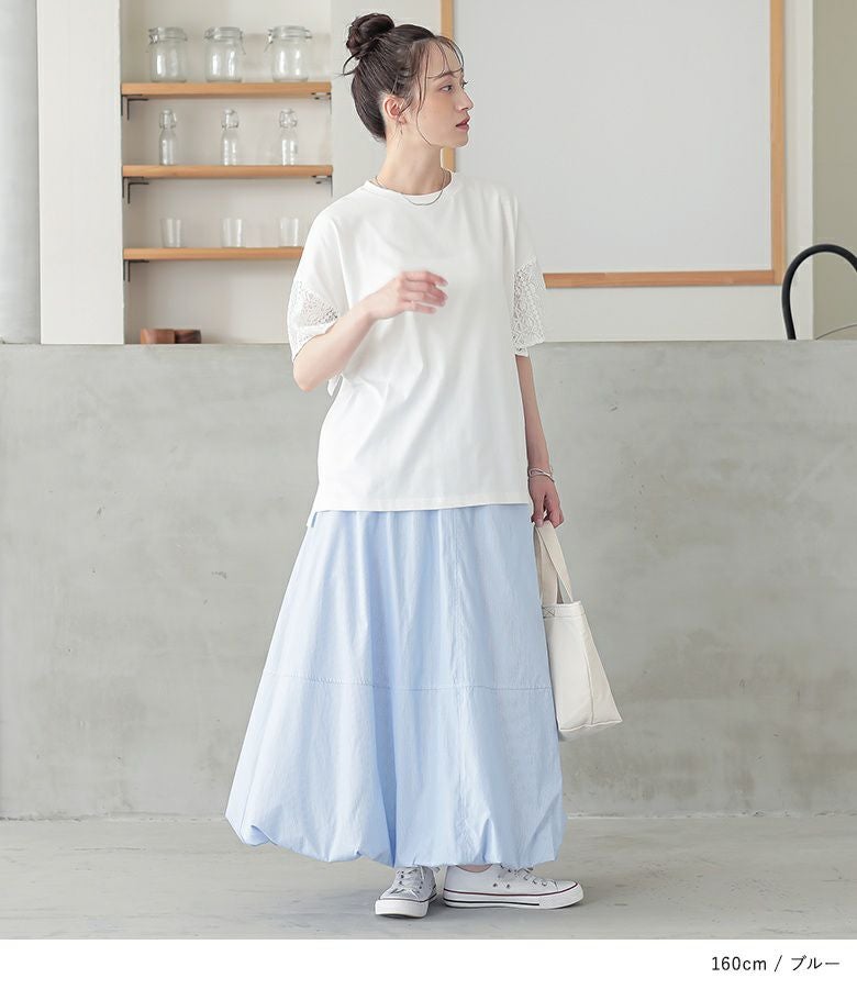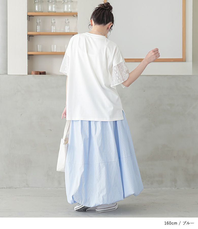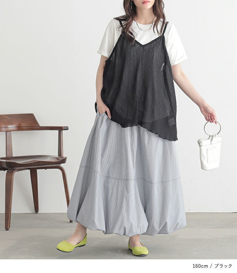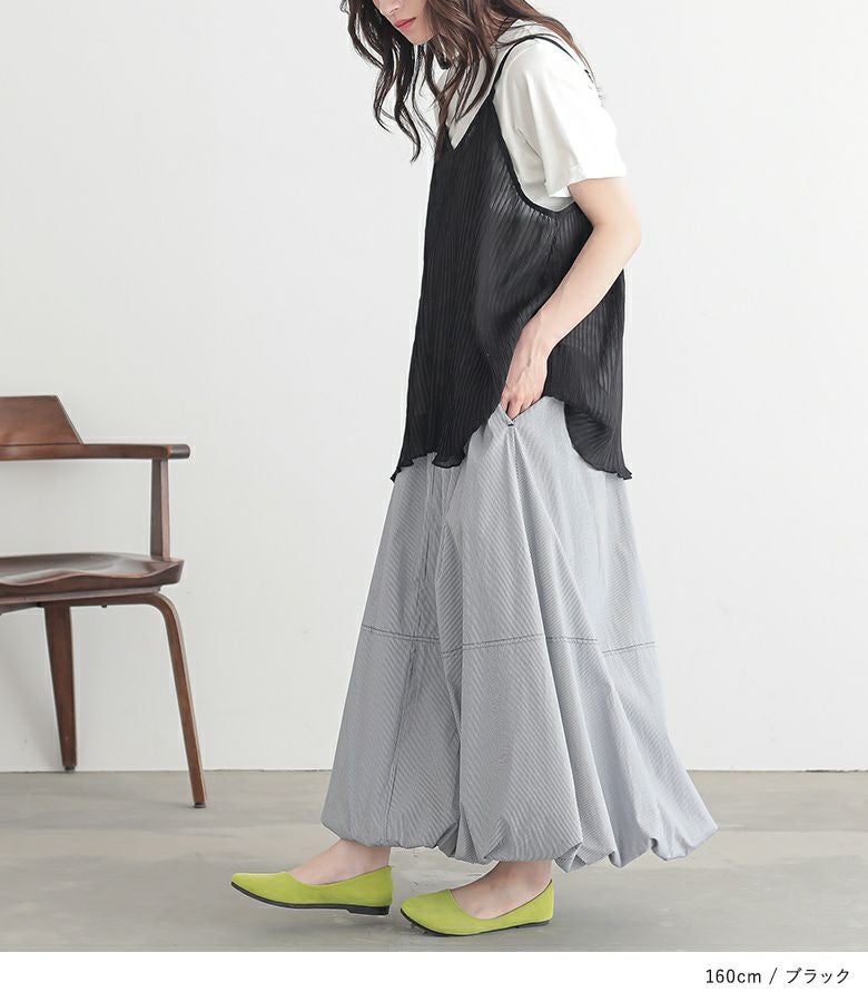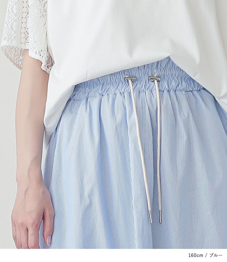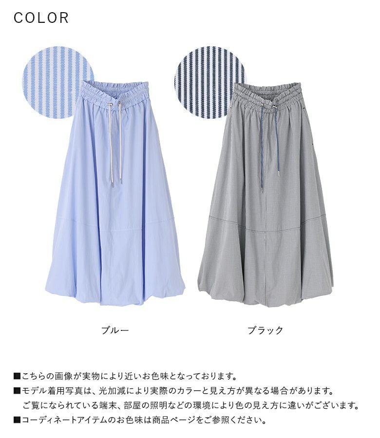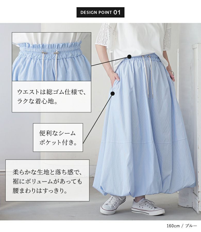ふんわりバルーン×涼しげストライプ柄で大人可愛く着こなせるスカート。