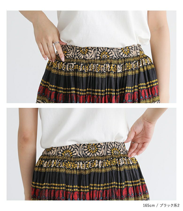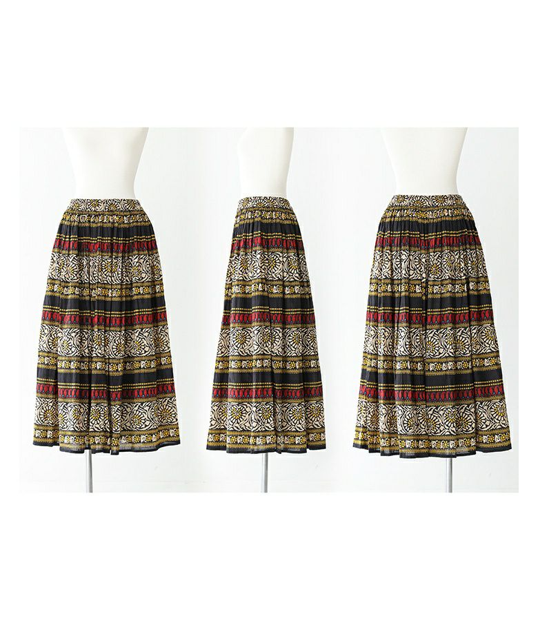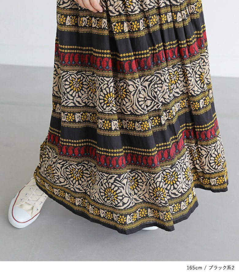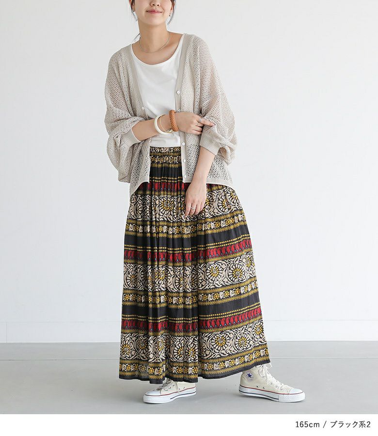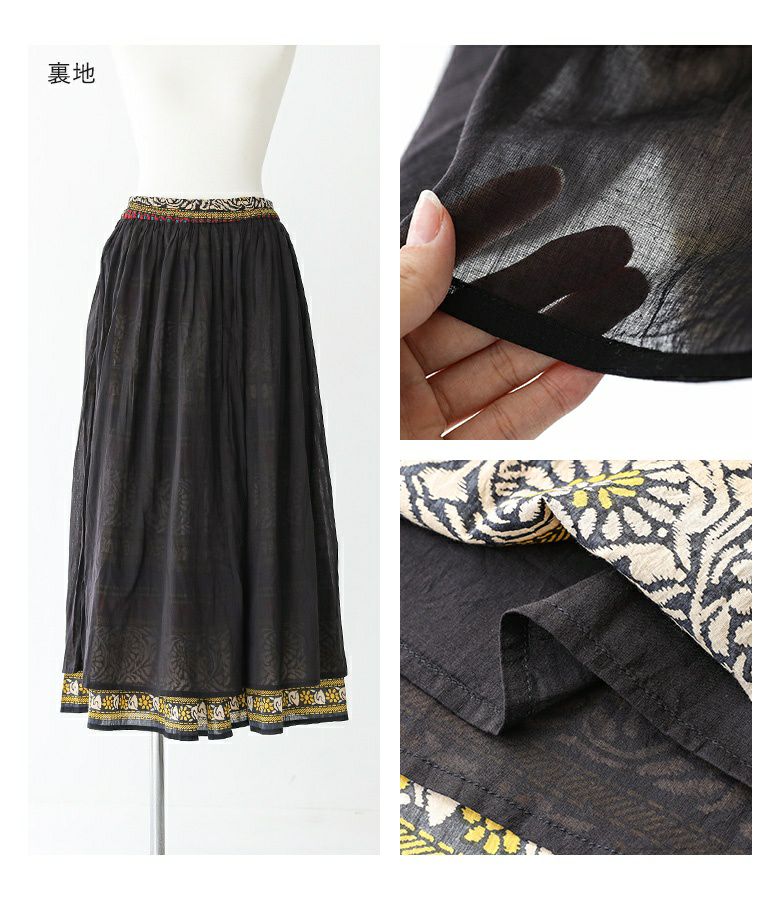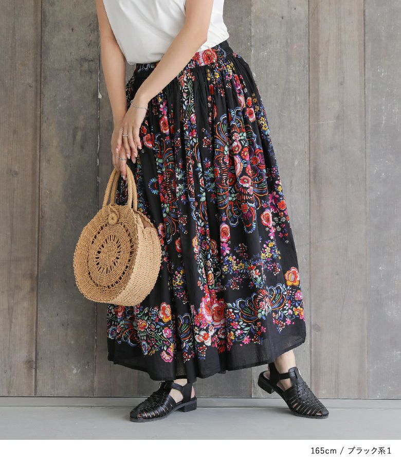 コットンの風合いと花柄が目を惹く、インドコットンマキシスカート。