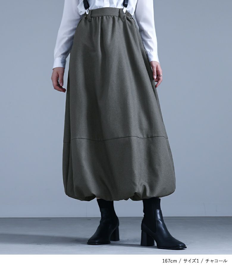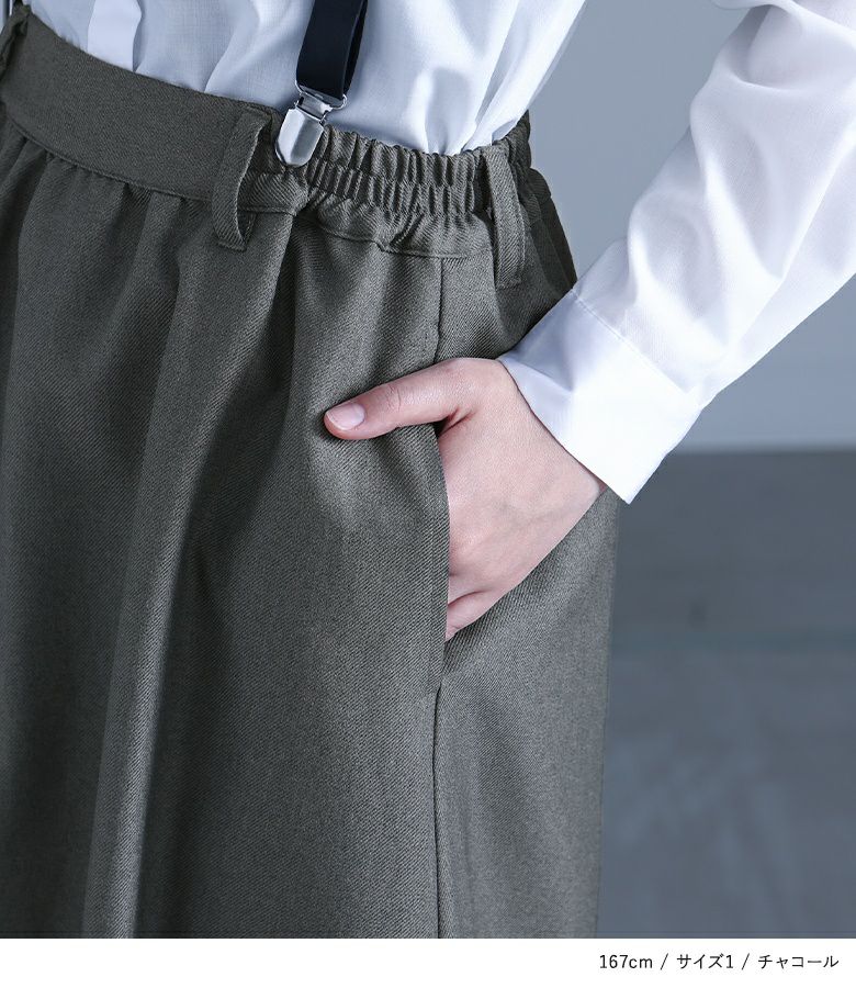 アジャスターは1番短い位置で着用。サスペンダーでスカートの位置が固定できて便利です。
