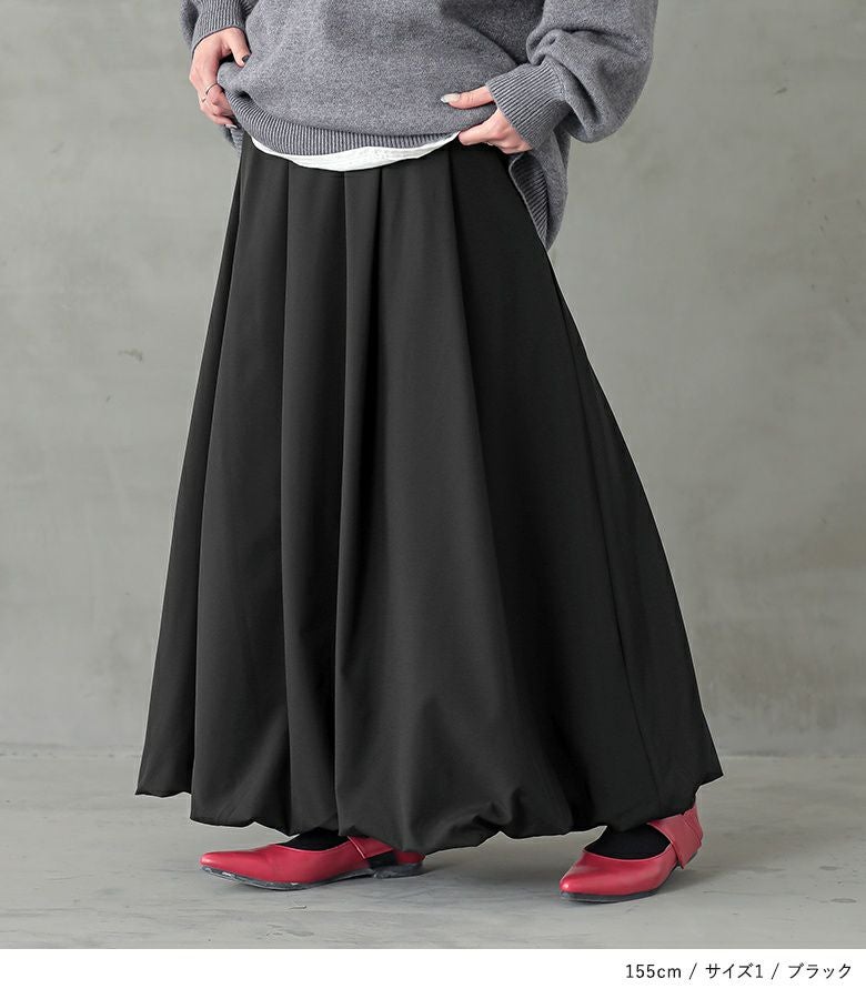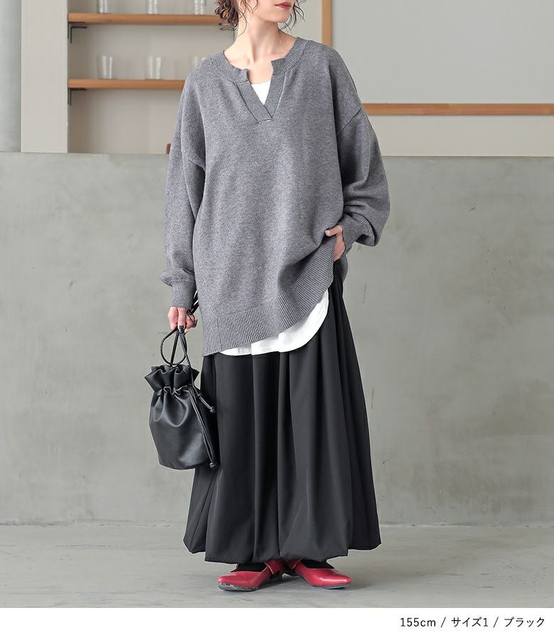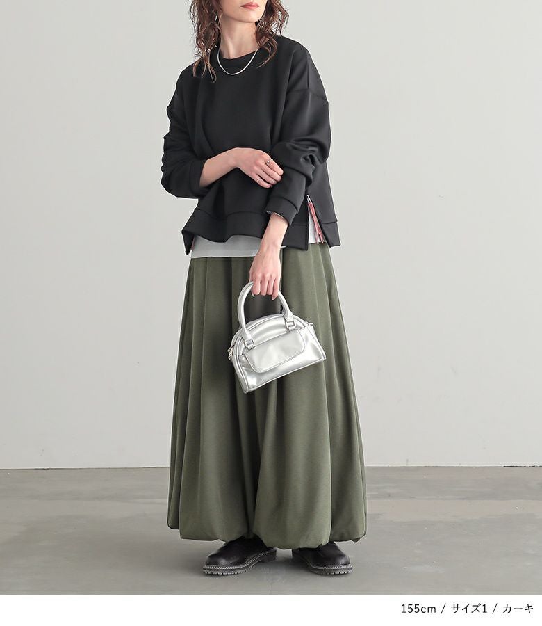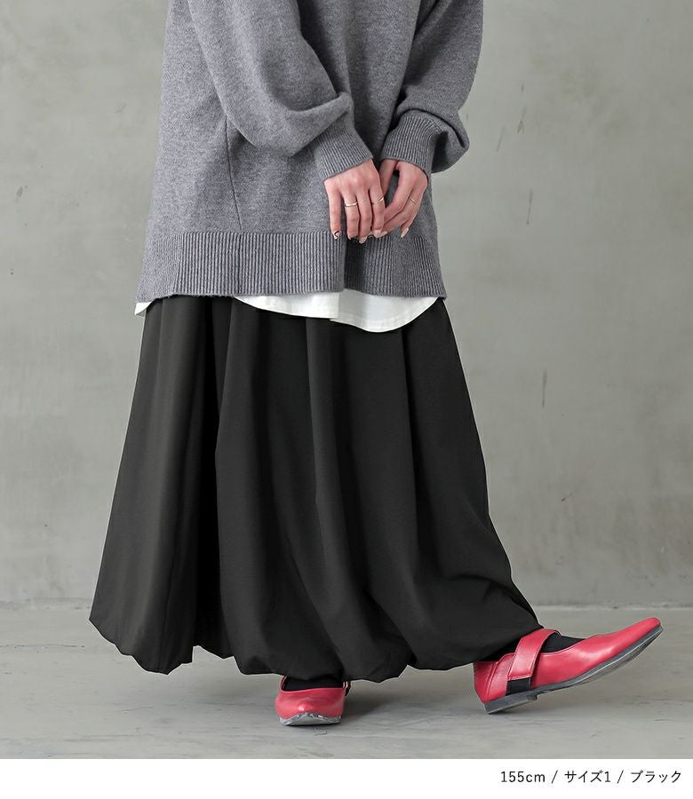 【普段着用】 Tops: L/LL Bottoms: L/LL | 【1】 着丈(ウエスト穿き):くるぶしが隠れる位 ウエスト:ややゆったり ヒップ:ややゆったり 太もも周り:ややゆったり 全体:ややゆったり