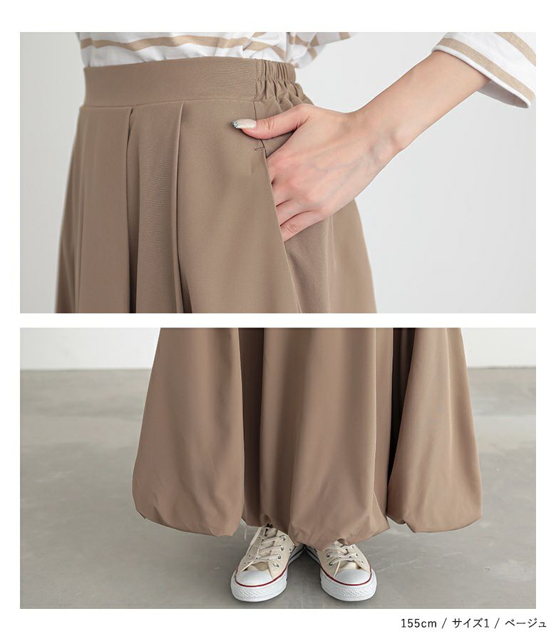 【普段着用】 Tops: M Bottoms: S/M | 【1】 着丈(ウエスト穿き):くるぶしが見える位 ウエスト:ややゆったり ヒップ:大きい 太もも周り:大きい 全体:ややゆったり