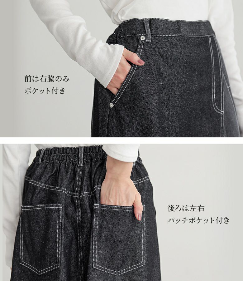ウエストがゴム仕様で窮屈感なく着用できました。薄手で柔らかなデニム素材だから、動きやすさも抜群!