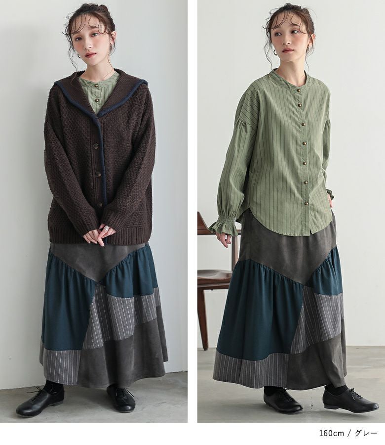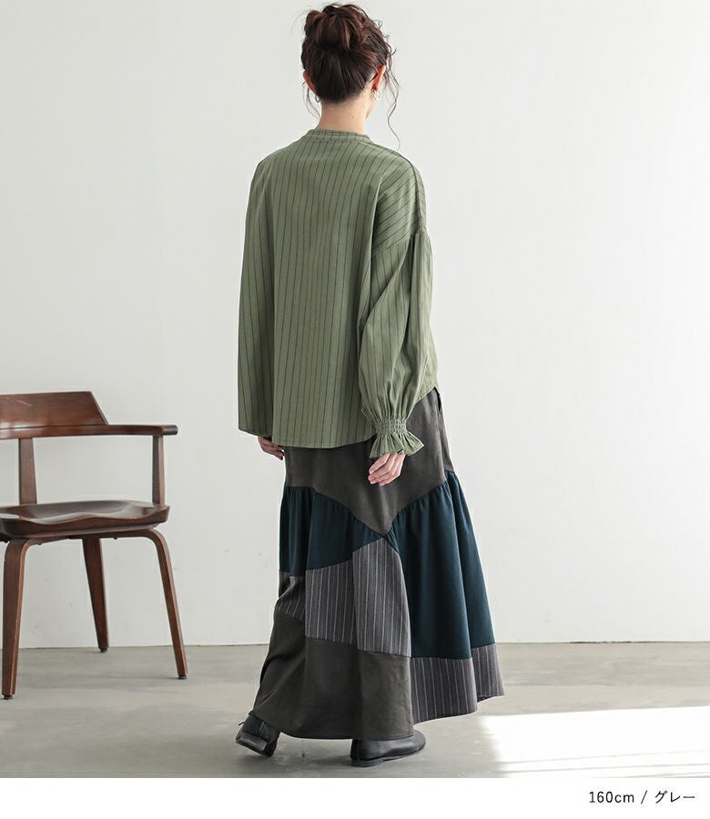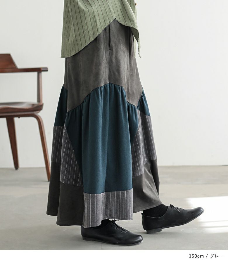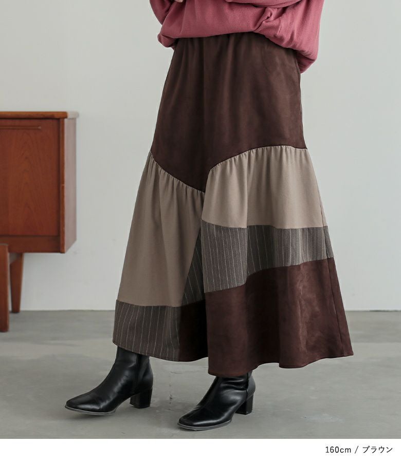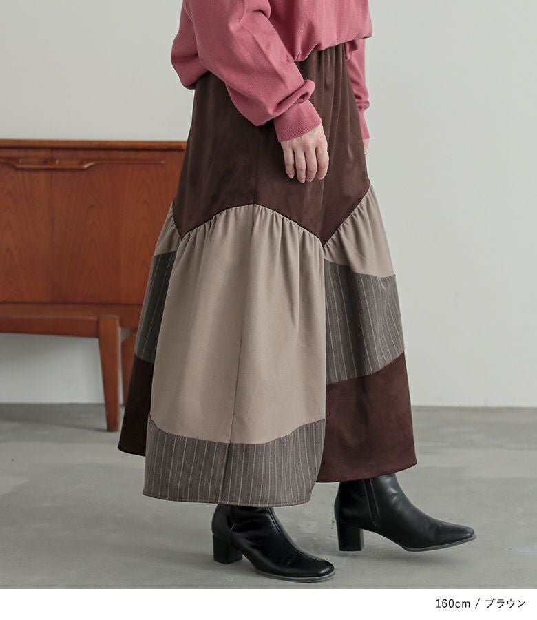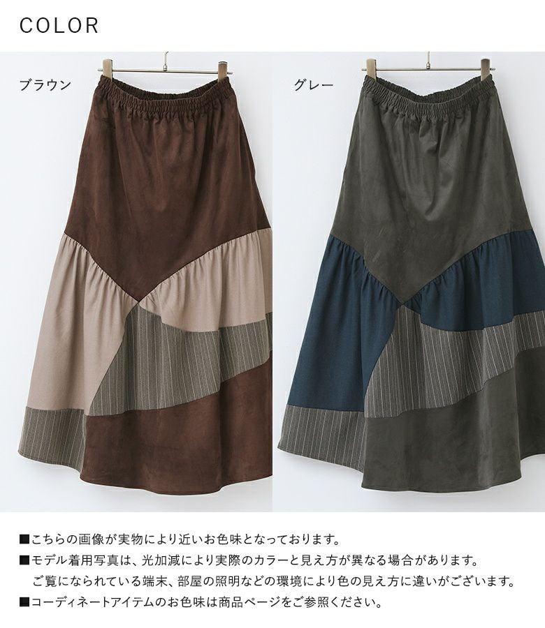 色も3色使っていて、その内のひとつはストライプなので1枚でオシャレに仕上がるスカートです。