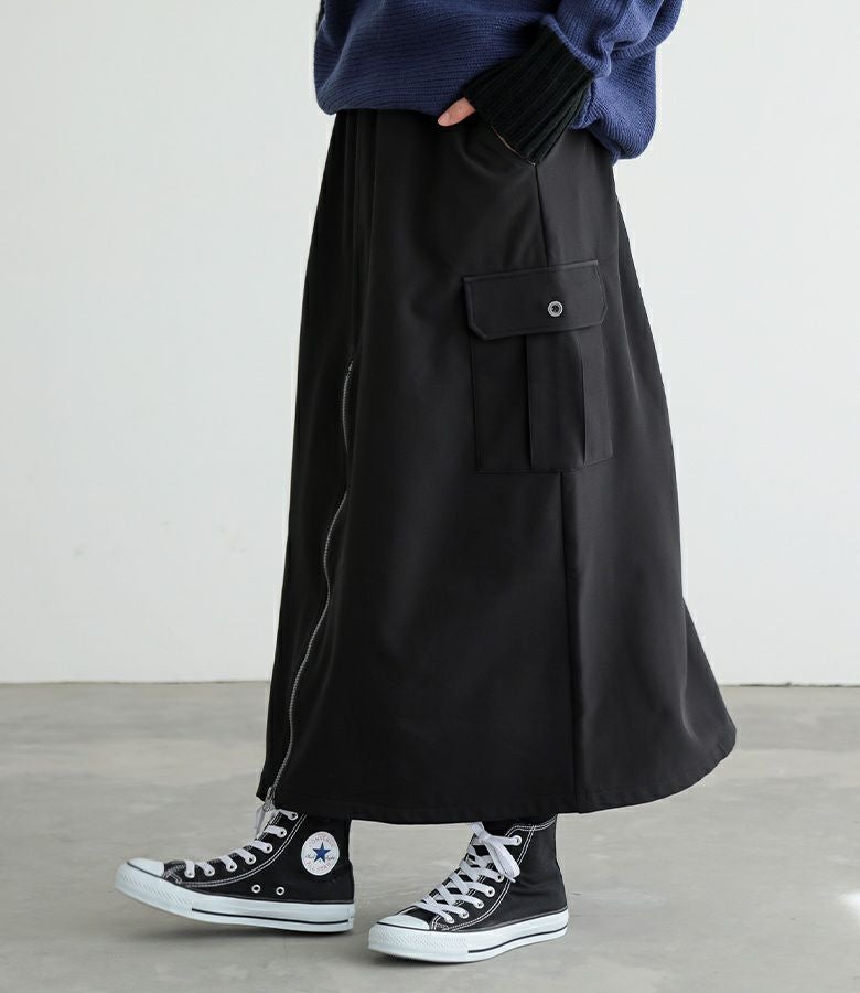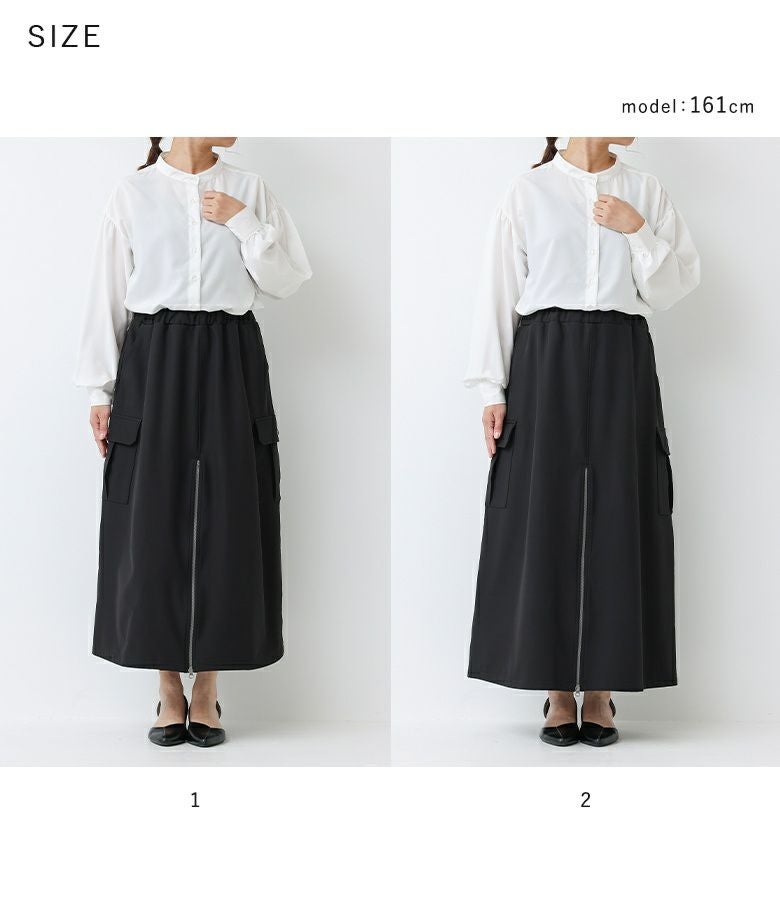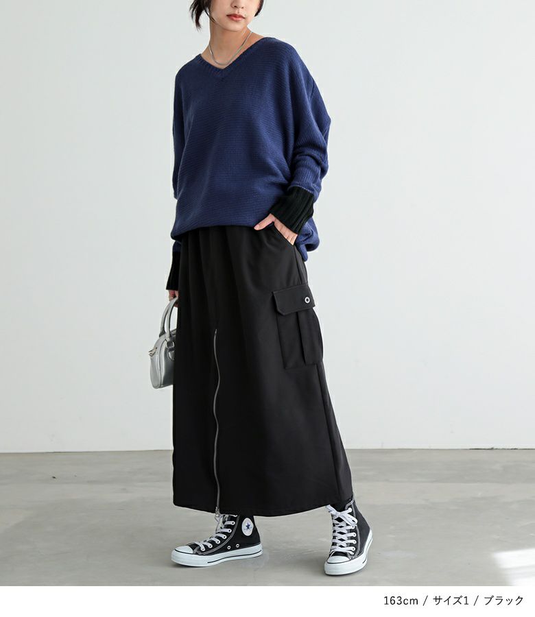 【普段着用】 Tops: L/LL Bottoms:LL | 【1】 着丈(ウエスト穿き):ふくらはぎが隠れる位 ウエスト:ややゆったり ヒップ:ジャスト 太もも周り:ややゆったり 全体:スッキリ