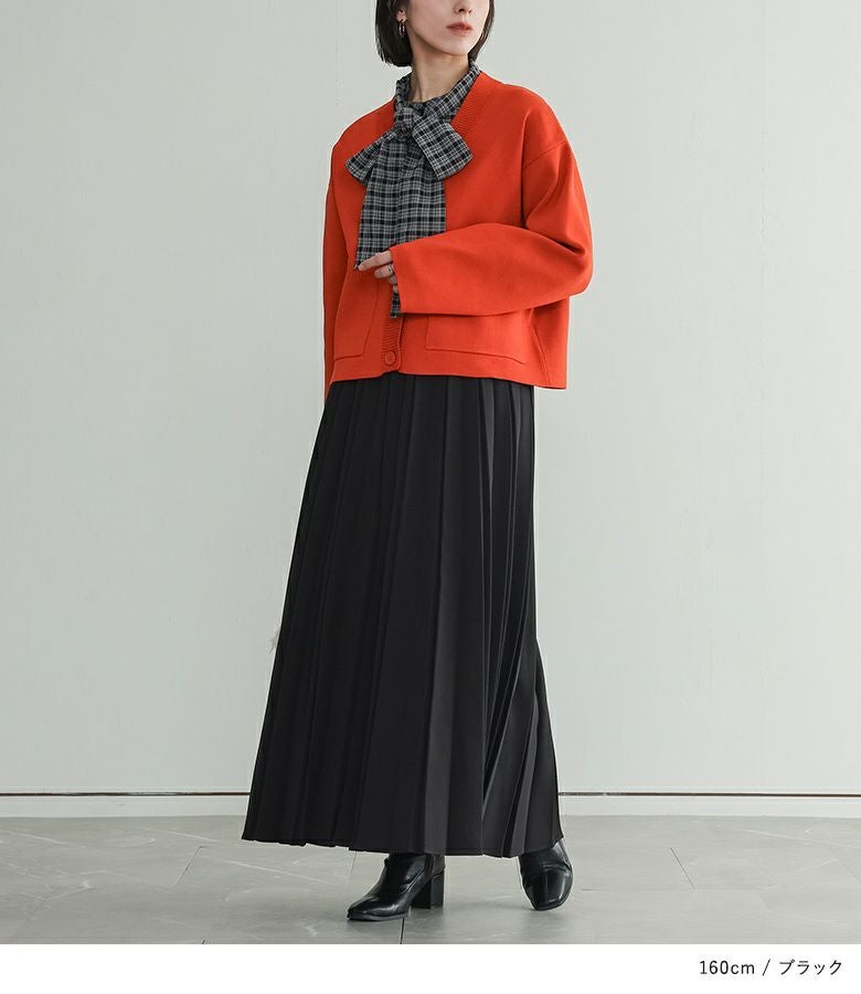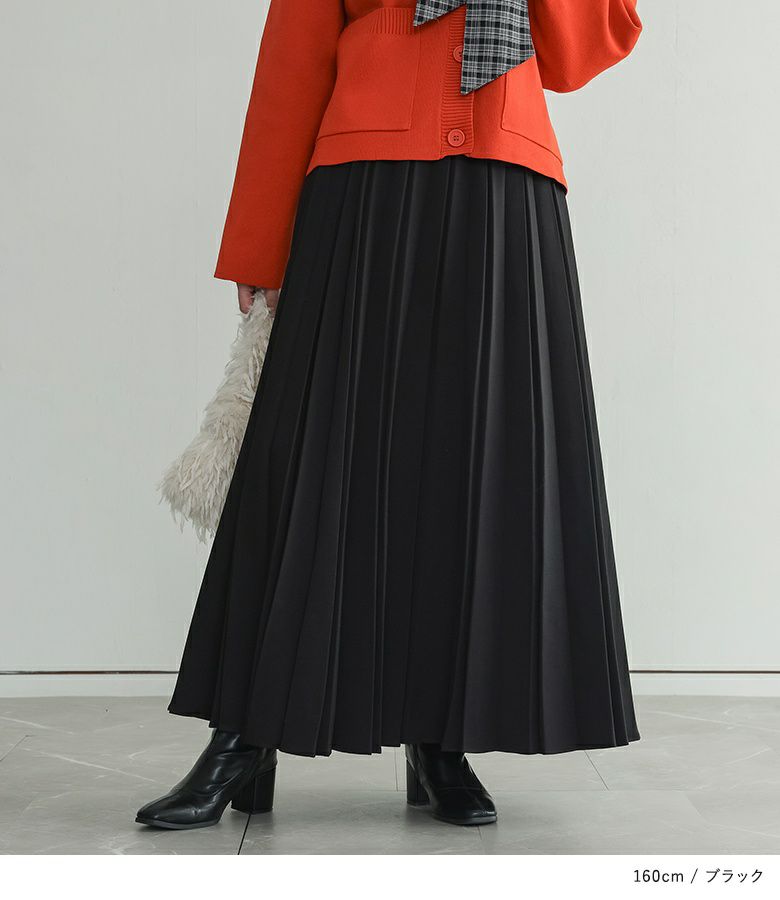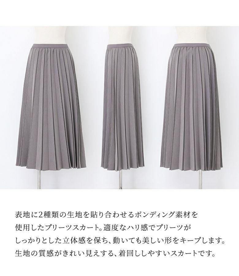 ボンディング素材を使用した、きれい見え立体プリーツスカート。