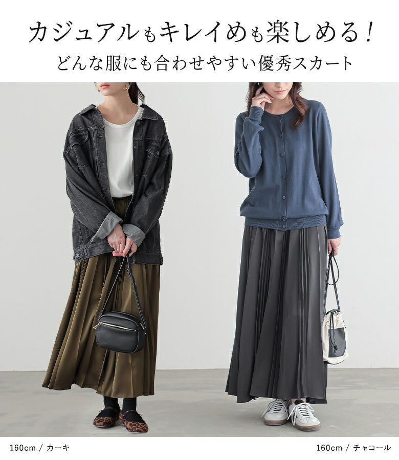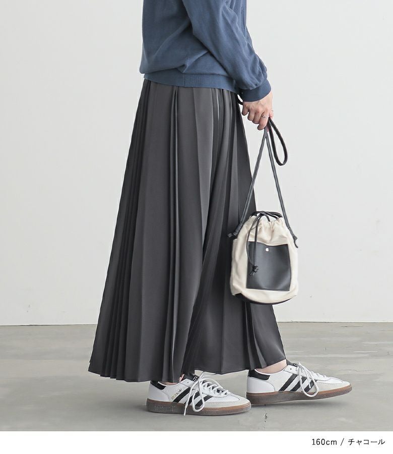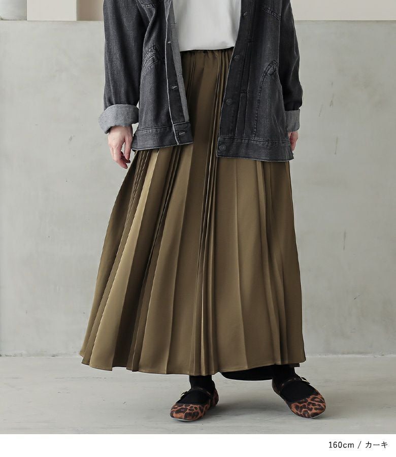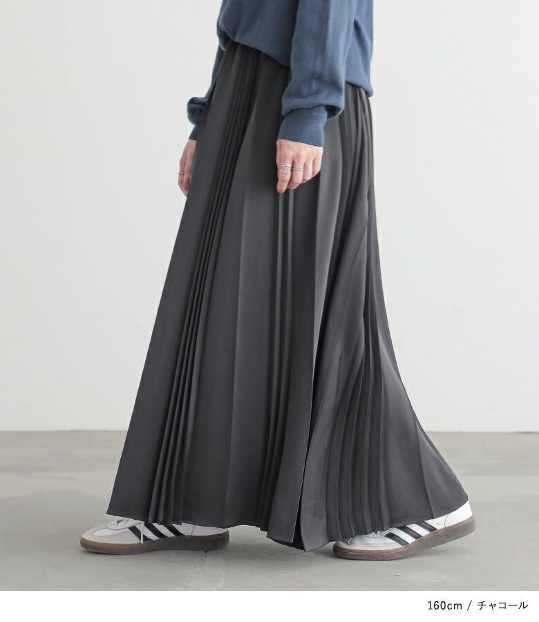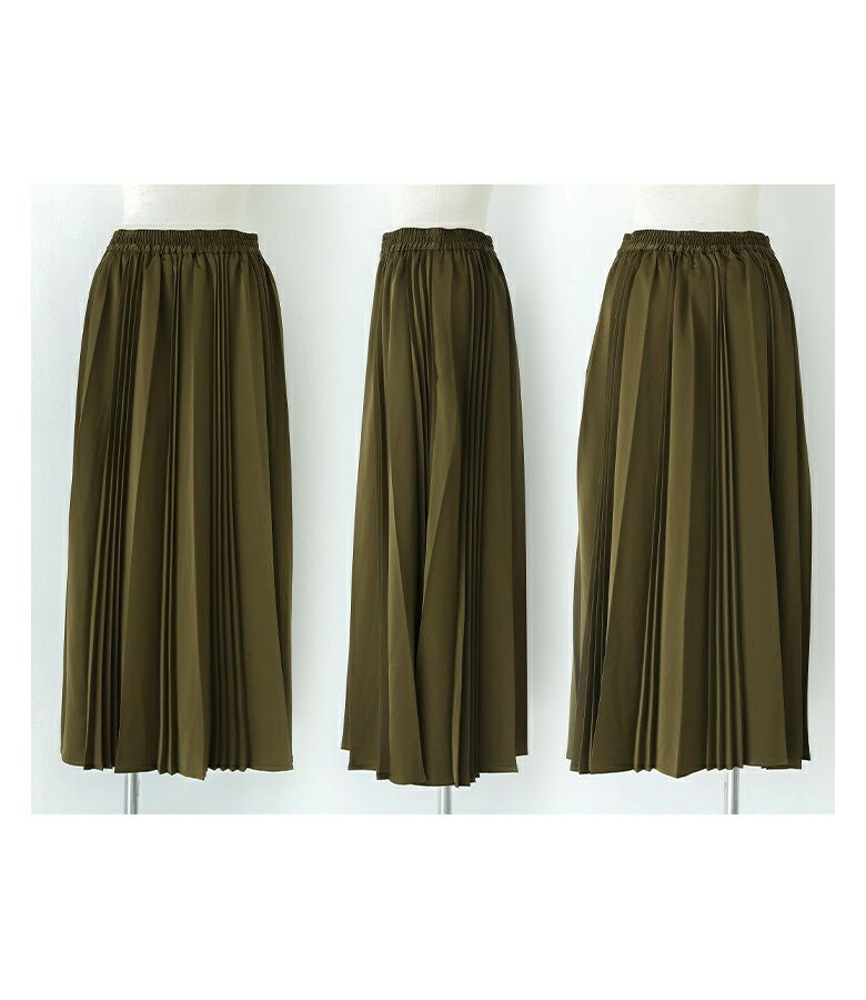 落ち着いた光沢のサテン生地ランダムプリーツスカート。