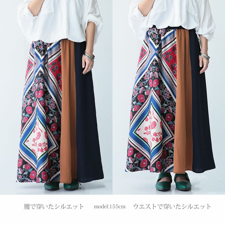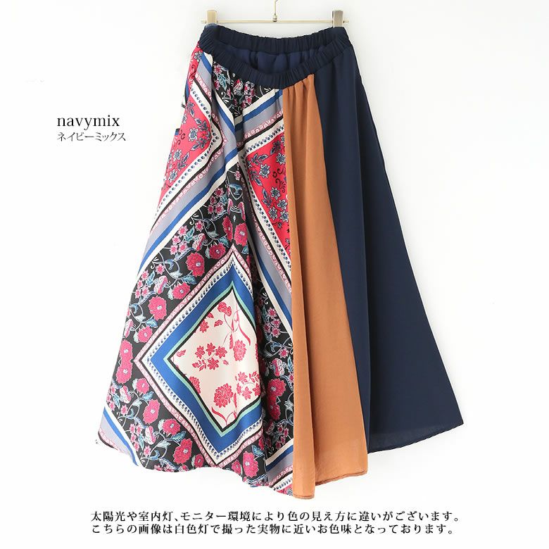 5. 『n'OrLABEL異素材スカーフ柄切替スカート』【メール便不可】