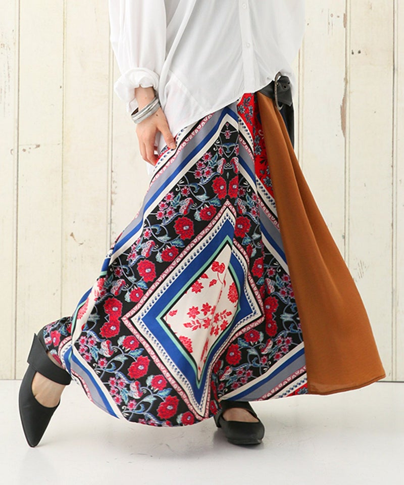 『n'OrLABEL異素材スカーフ柄切替スカート』