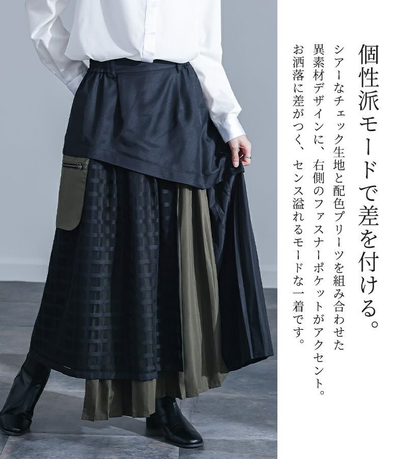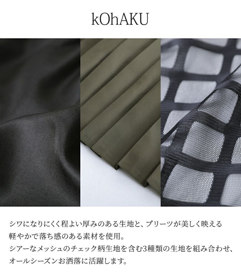 穿くだけでハイセンスな着こなしを実現する≪kOhAKU≫異素材シアーチェックプリーツスカートです。