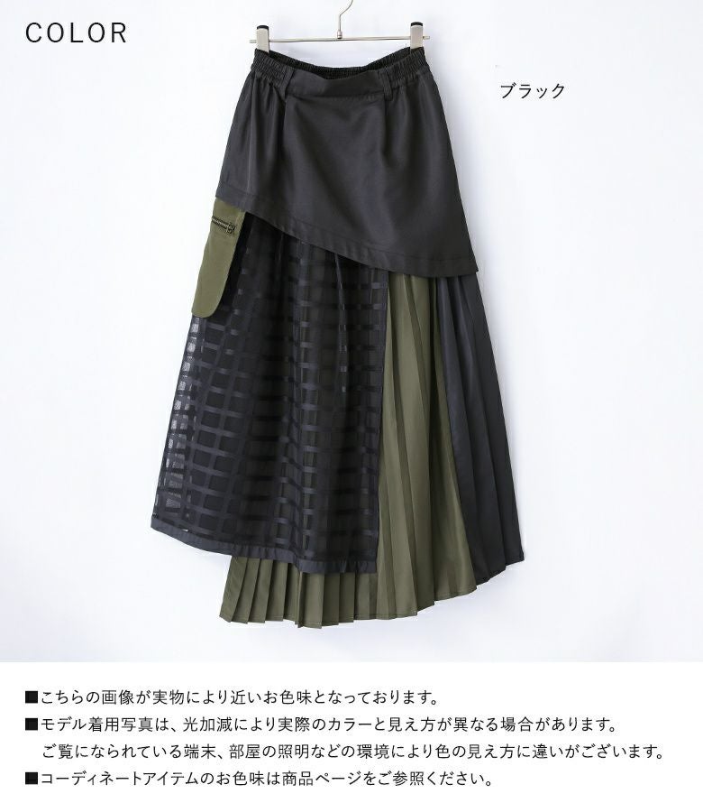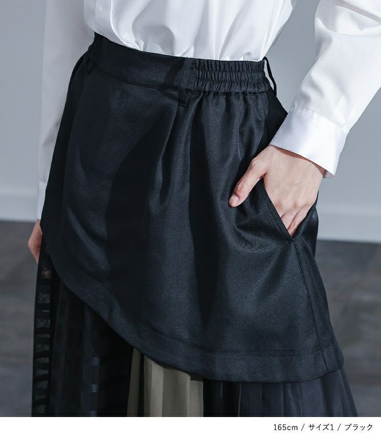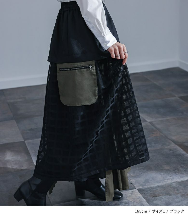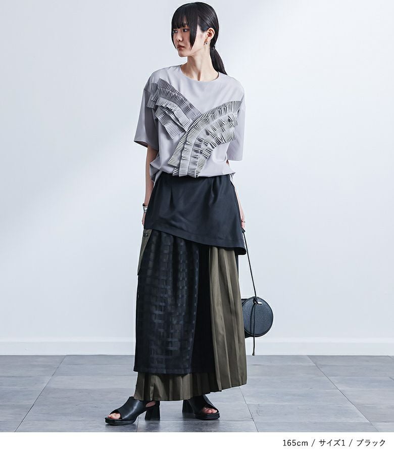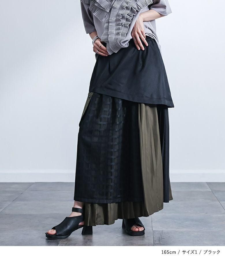 計算された異素材のレイヤード&配色でお洒落を語る、モードなデザインスカート。