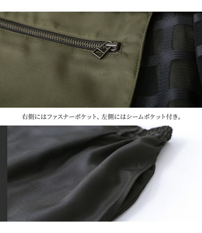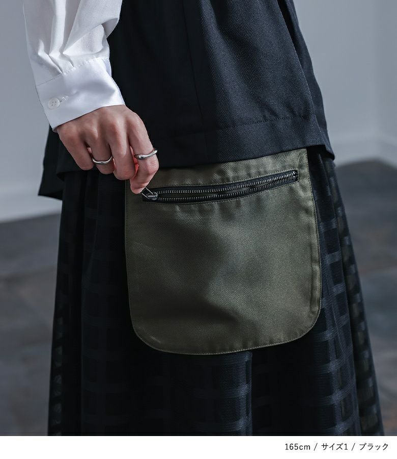 アシメデザインで魅せる360度抜かりのないシルエットは、ゆるっとしたトップス合わせやインをして着てもかっこよくモードに決まる。右側につけたファスナーポケットでメリハリのあるアクセントを加えました。