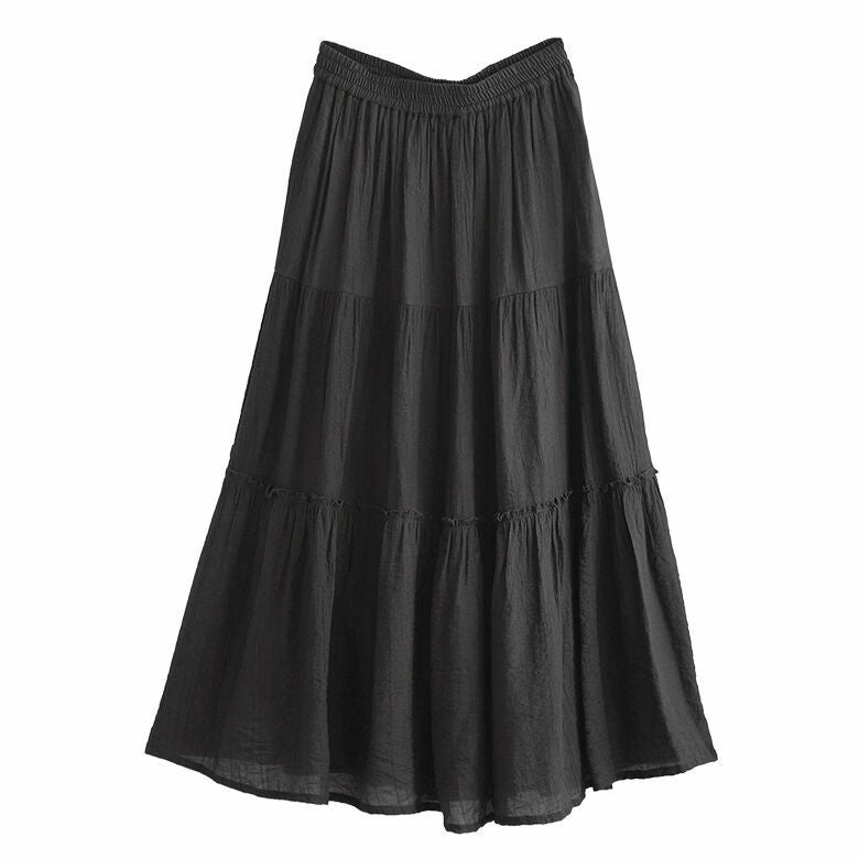 ブラックのロング丈を購入しました。 ティアードですが甘くなり過ぎないデザインで、夏場でも涼しく着用出来ます。