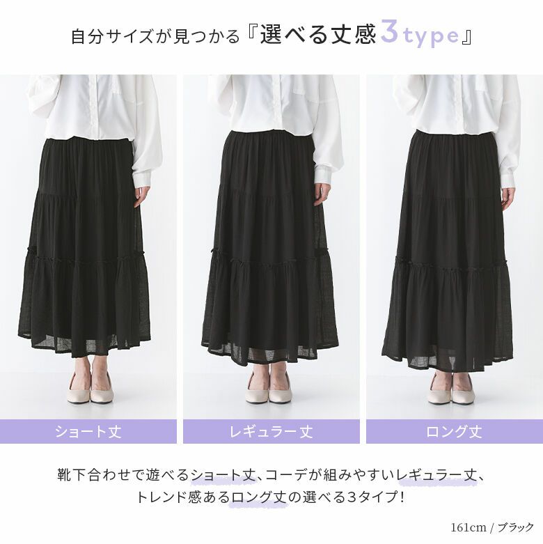 選べる丈感3type!ひらりと軽やかティアードスカート♪