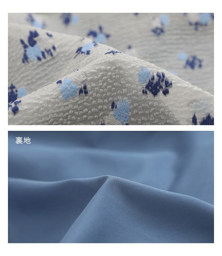 ほんのりシアー感のある、ぽこぽことした風合いあるジャカード生地。ハリのある生地感で、立体的なバルーンシルエットを作り出します。さらっとしたポリエステル素材の裏地付き。