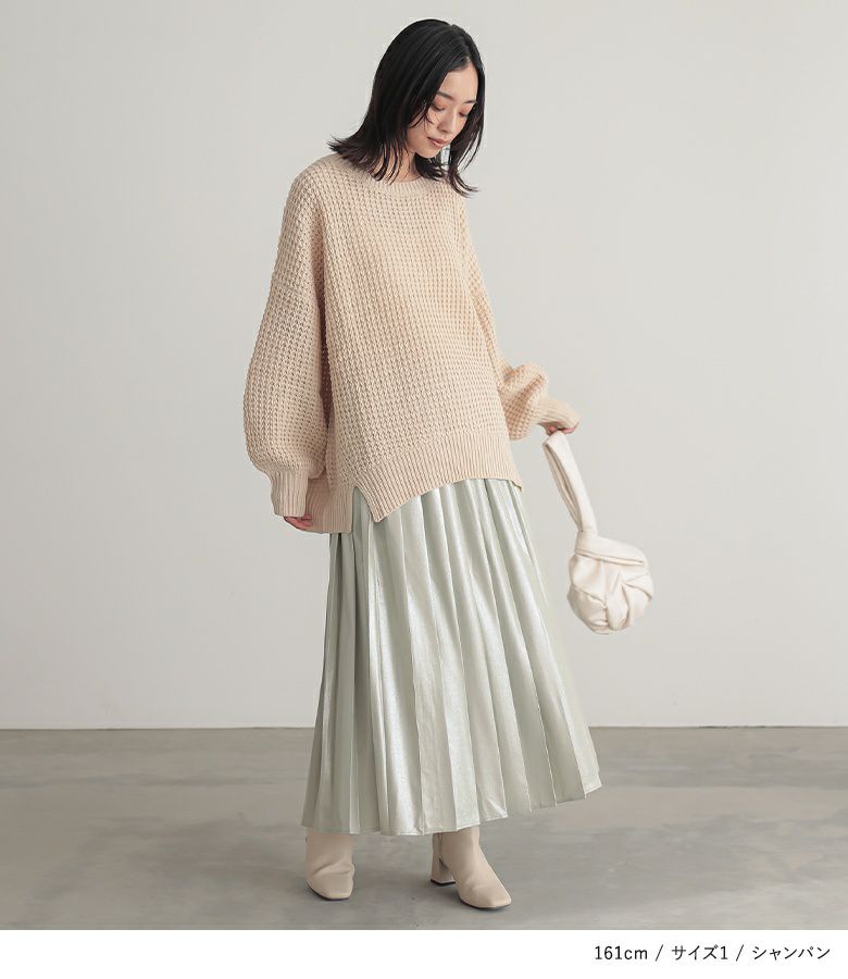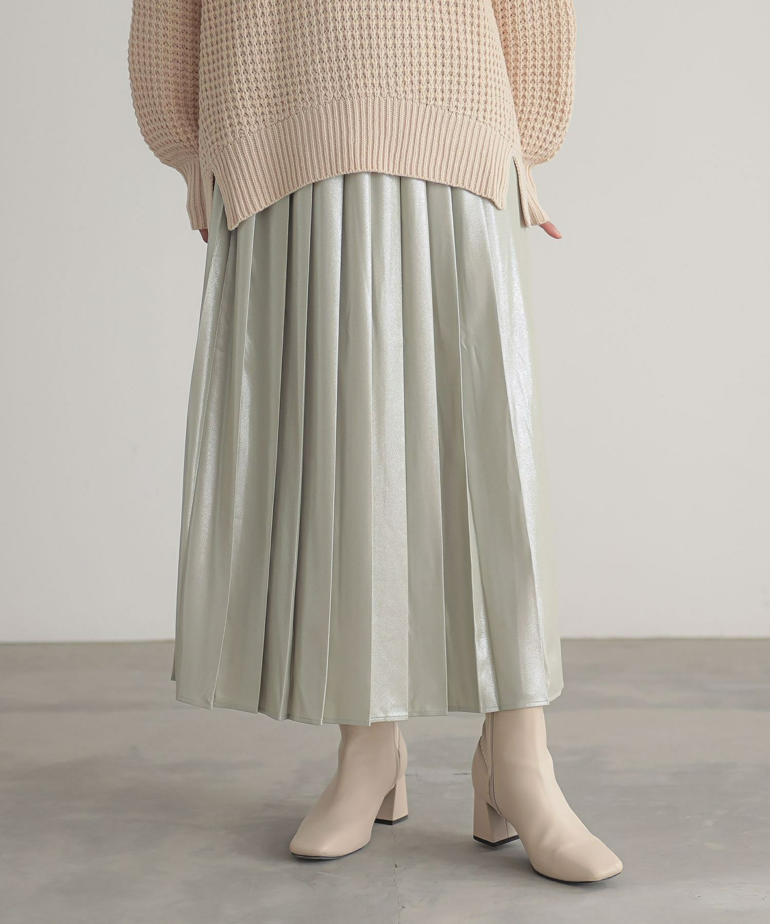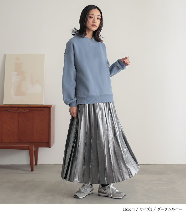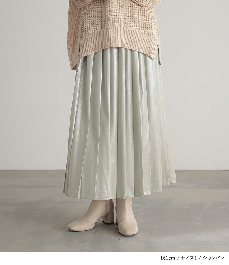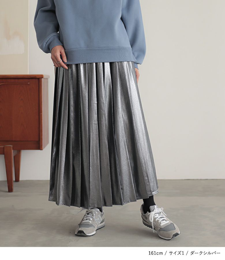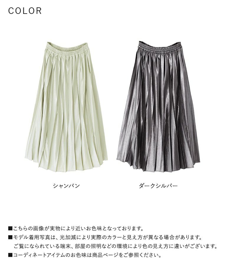他の画像を見る 選べる2サイズ展開!軽い布帛生地を使用したメタリック調のプリーツスカート。 『n'OrLABELメタリックプリーツスカート』【メール便不可】【20】 ¥ 5,980 税込 4.50 (4)