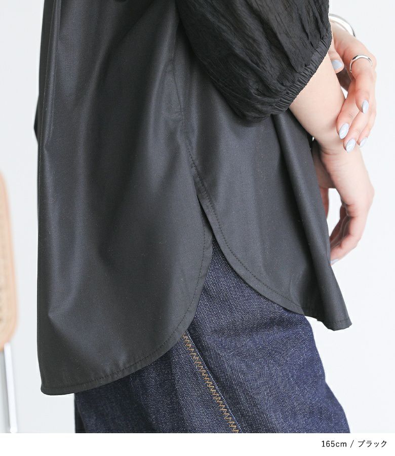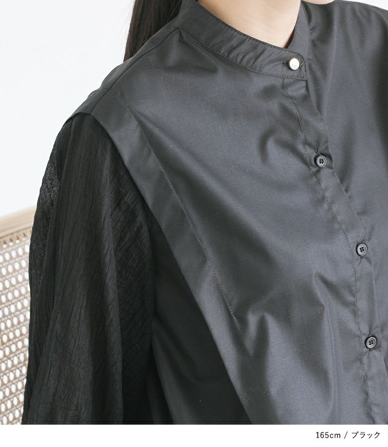 身頃はさらりとした軽い着心地のシャツ生地。風合いのあるシアー素材の袖がポイントです。