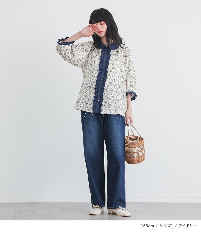 【普段着用】 Tops: L Bottoms: L | 【1】 袖丈:ひじ下3cm位 着丈:ヒップ下少し見える位 腕周り:ややゆったり バスト:ややゆったり 全体:ややゆったり