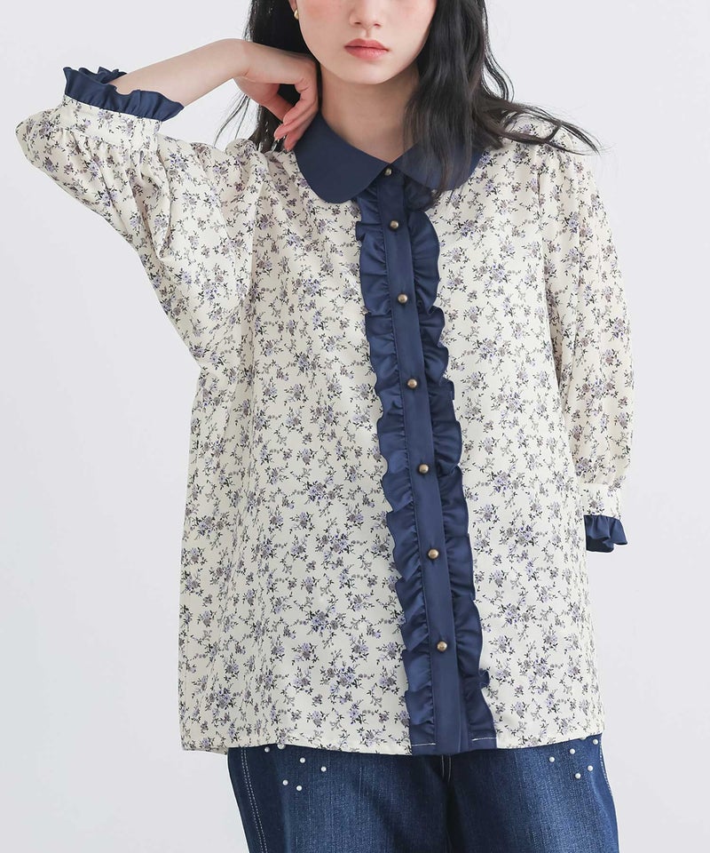 【2】 袖丈:手首上7cm位 着丈:ヒップがすっぽり隠れる位 腕周り:ゆったり バスト:ゆったり 全体:ゆったり