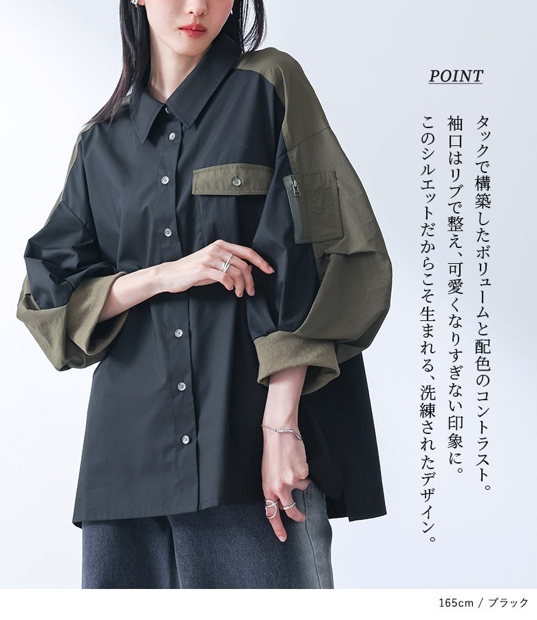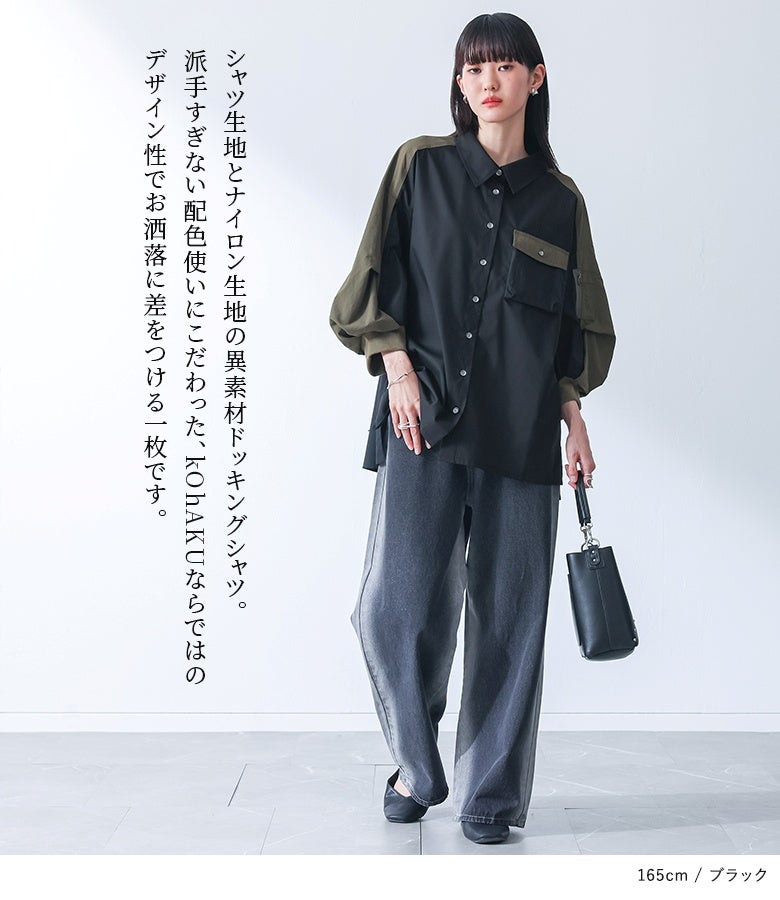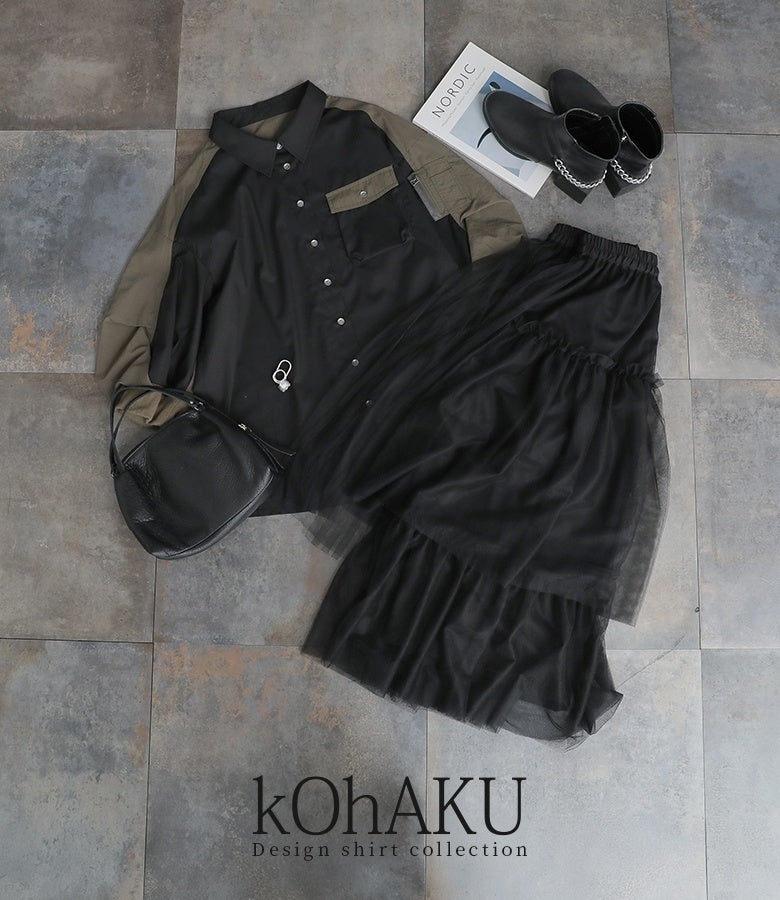 『kOhAKU異素材袖デザインシャツ』