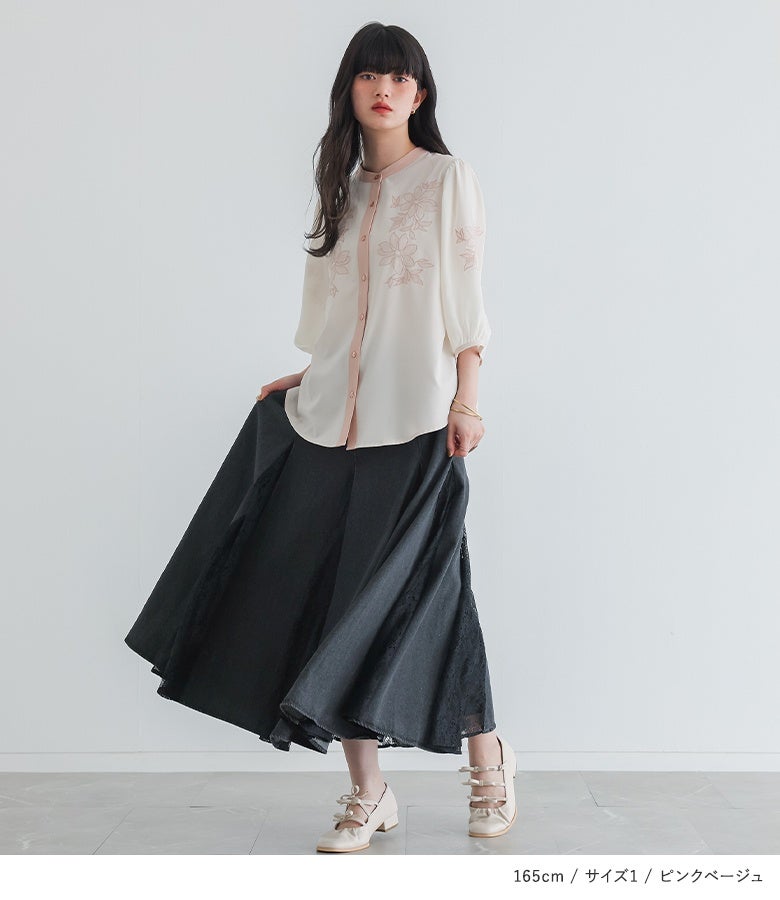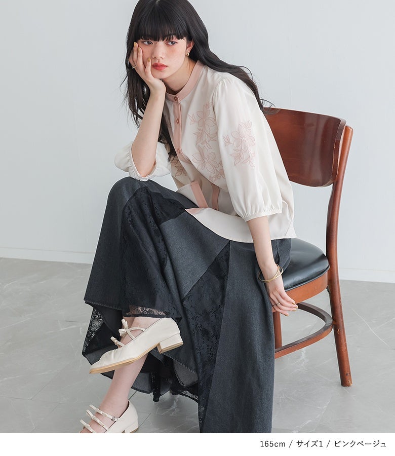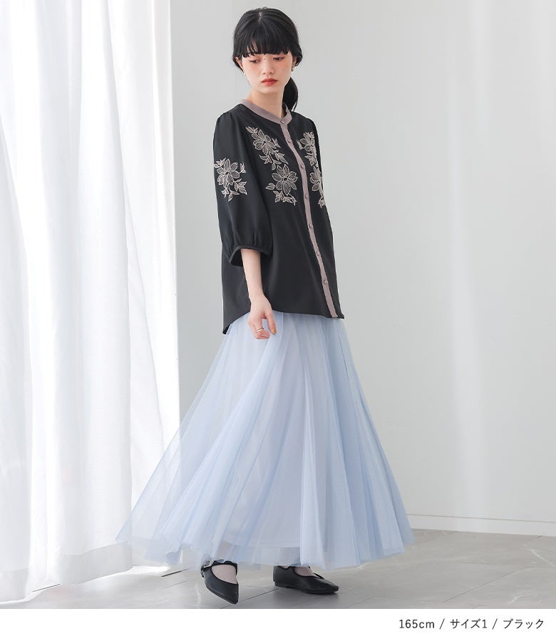 【普段着用】 Tops: M Bottoms: M/L | 【1】 袖丈:ひじ下3cm位 着丈:ヒップ真ん中より下位 腕周り:ややゆったり バスト:ややゆったり 全体:スッキリ