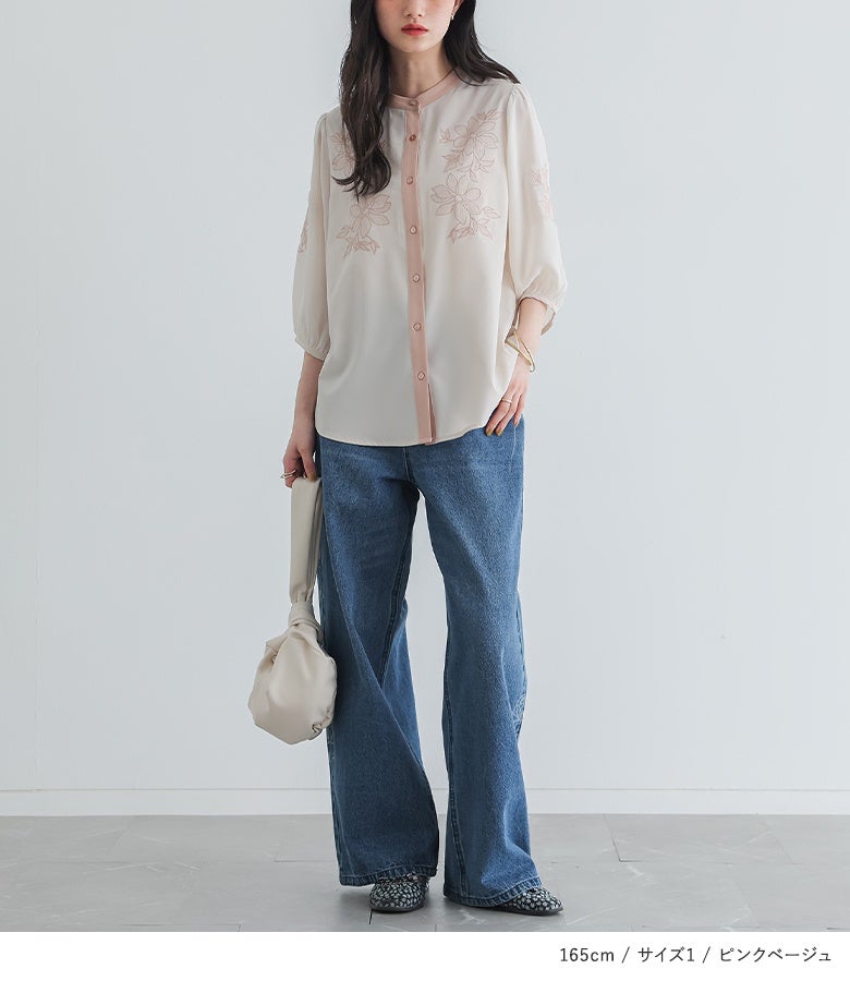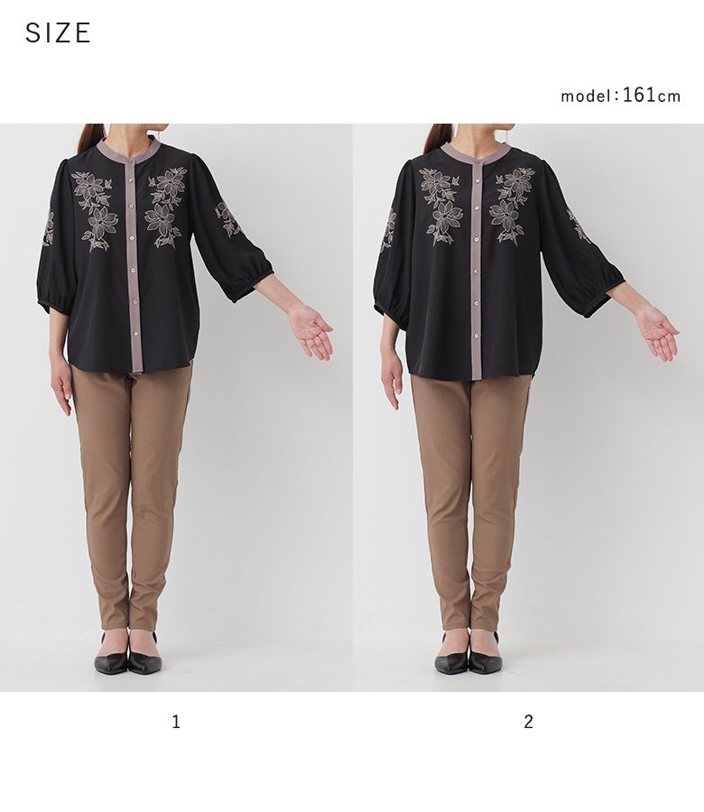 【普段着用】 Tops: M Bottoms:M | 【1】 袖丈:ひじ下5cm位 着丈:ヒップ真ん中位 腕周り:ややゆったり バスト:ややゆったり 全体:ややゆったり