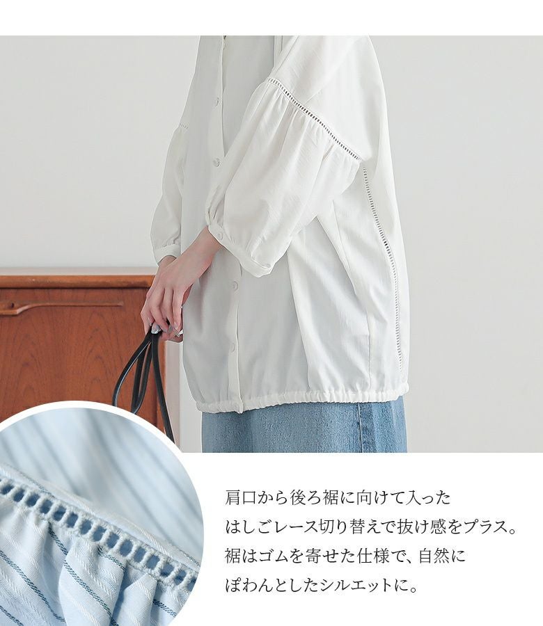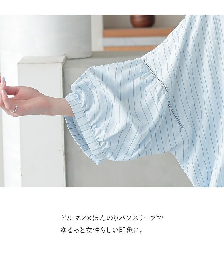 はしごレース使いやパフスリーブのようなギャザー、ドルマンシルエットなど大人女子にとって嬉しいデザイン。