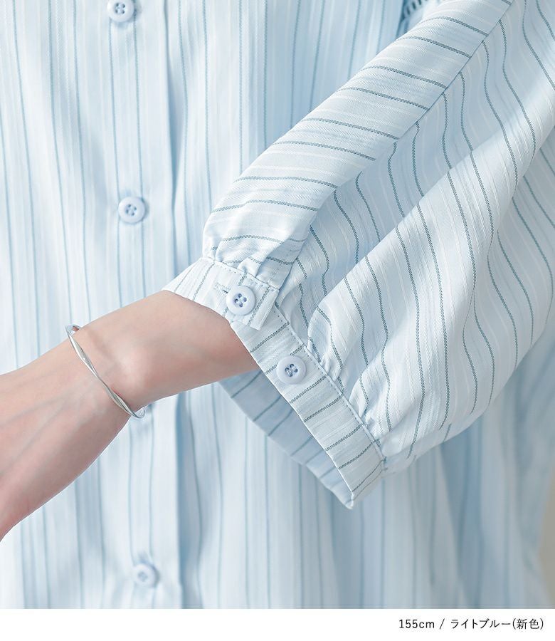 サックスストラップとホワイトを購入。普段 Lサイズ着用ですが ゆったりしてます。抜け襟や 透かしレースは とても可愛いです。ただ デザイン的に幅広なので胸の大きい人は太って見えるかも。サックスストライプはパジャマ感あります…