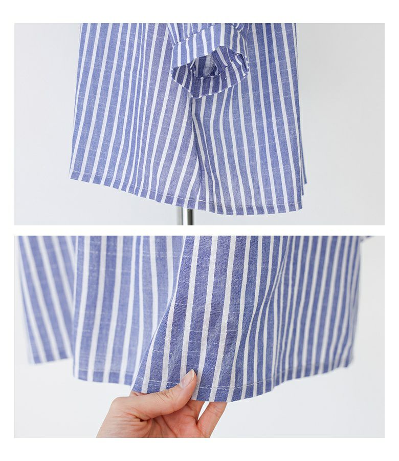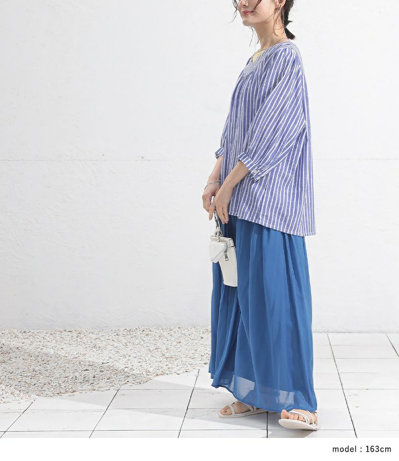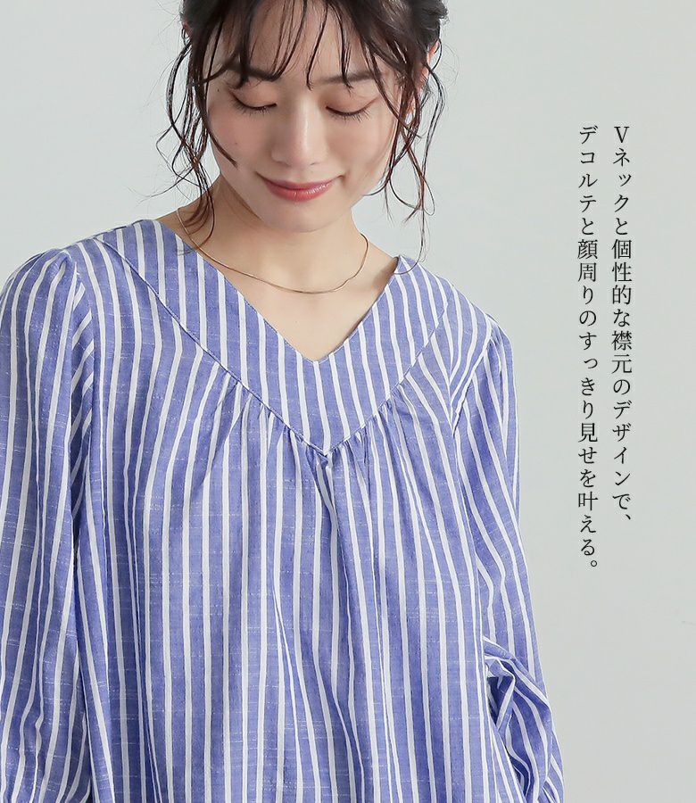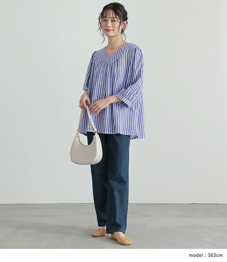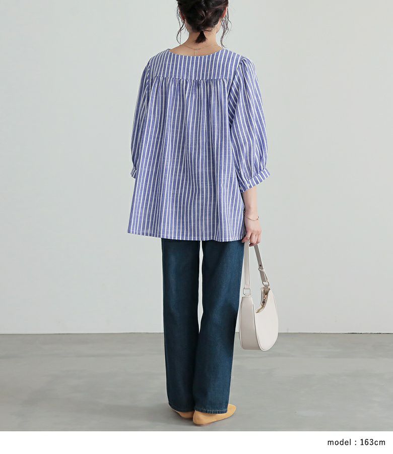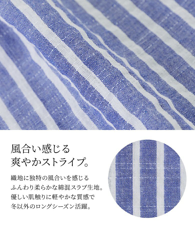 織地に独特の風合いを感じるストライプのふんわりやわらかで軽い生地を使用しています。