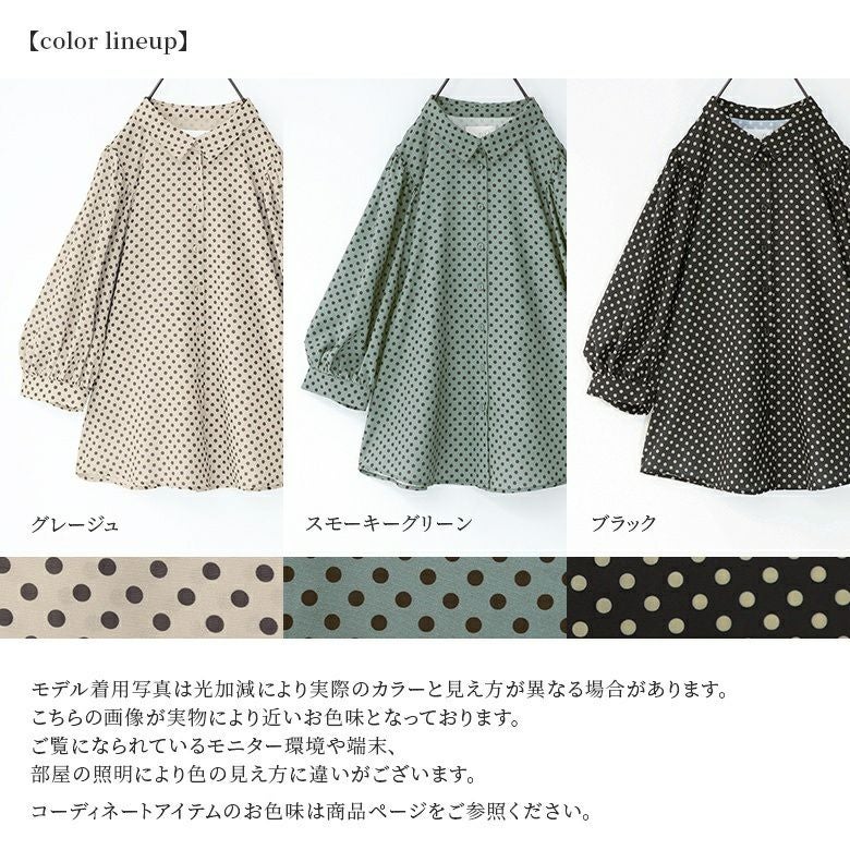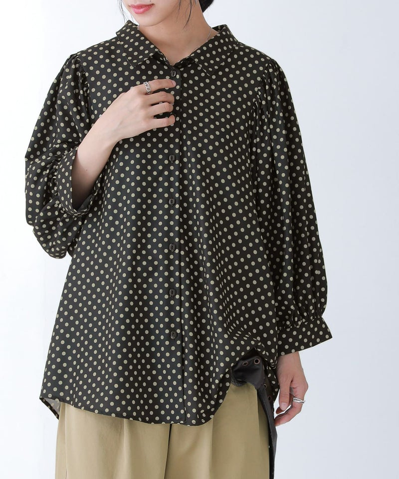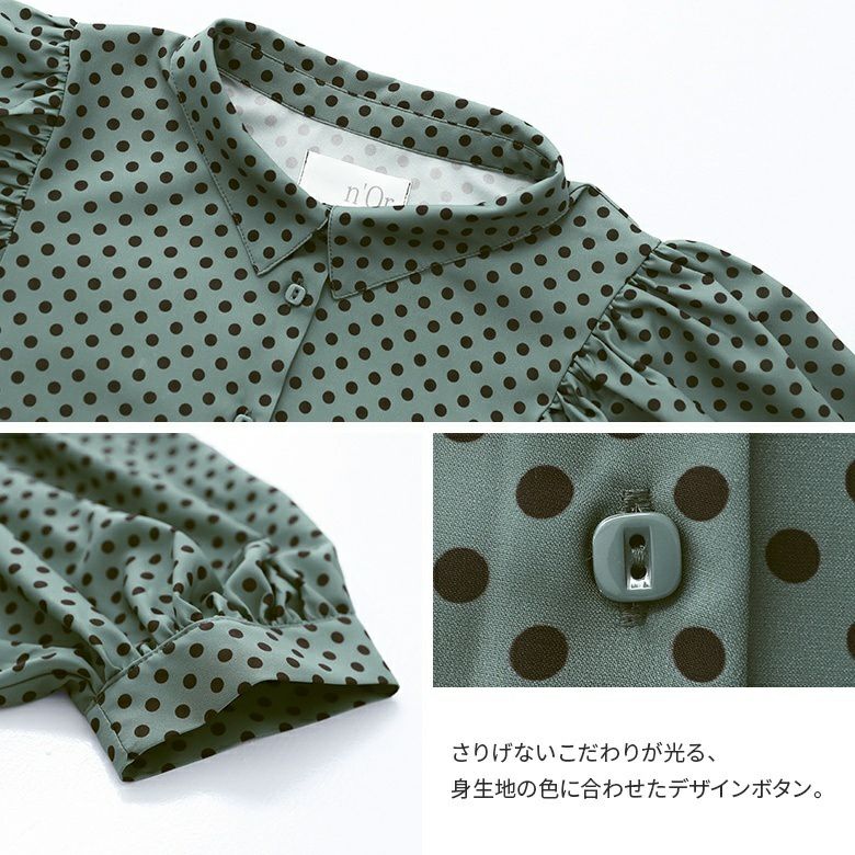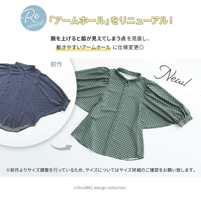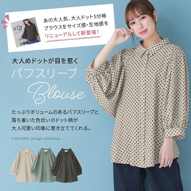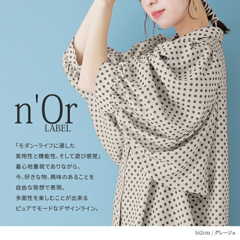 n'OrLABELドット柄たっぷりパフスリーブブラウスです。