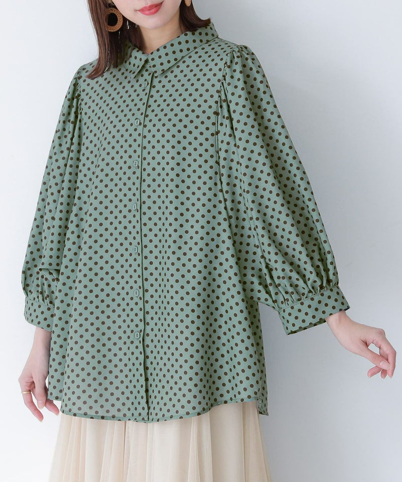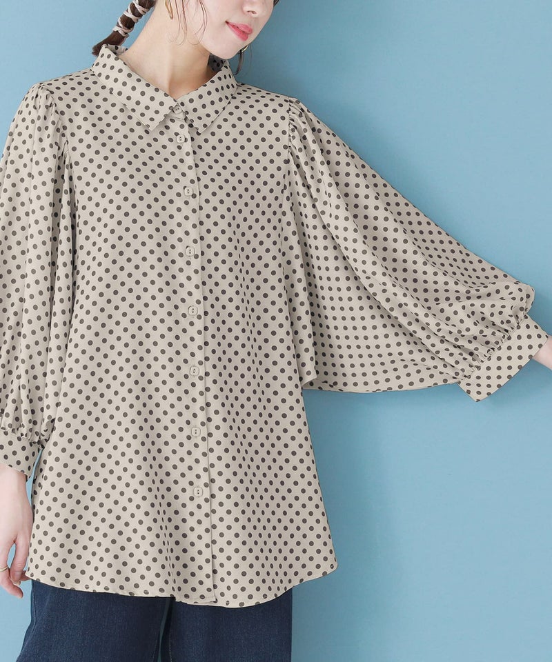 『n'OrLABELドット柄たっぷりパフスリーブブラウス』