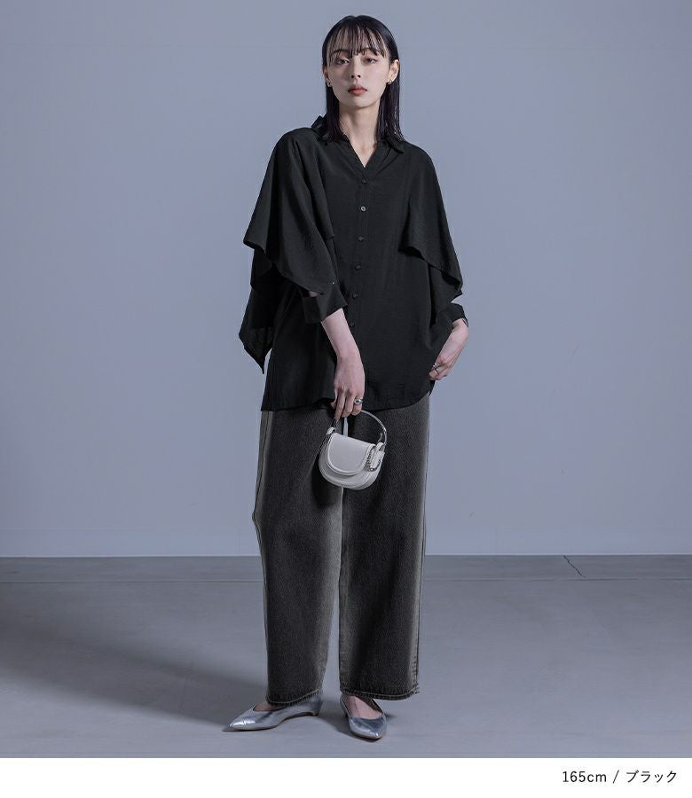 ドレープシルエットが美しい変形袖シャツ。
