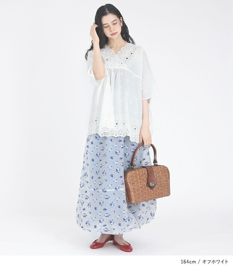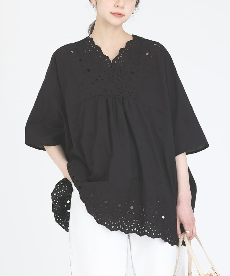 豪華な刺繍柄が魅力の軽やかに着こなせるブラウス。