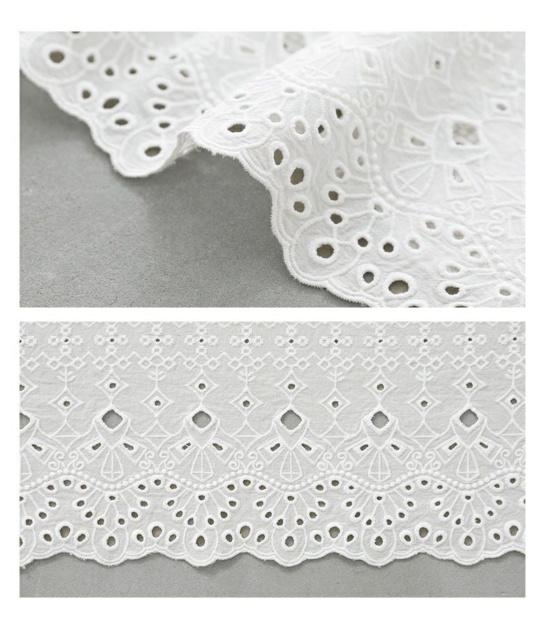 コットン100%の風合いあるコットンレース生地です。柔軟洗い加工をかけた柔らかな仕上がりで、軽やかな着心地です。