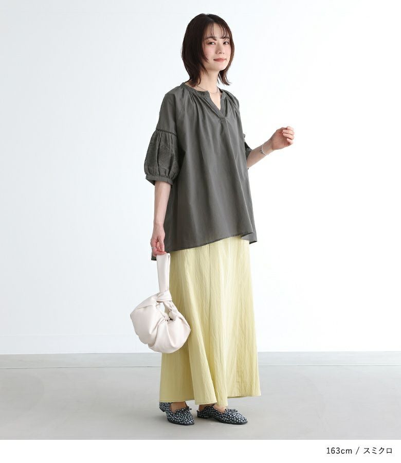 デニムなどを合わせたカジュアル・ナチュラルな着こなしがおすすめです。裾はアウトでもインでもお洒落にご着用いただけます。